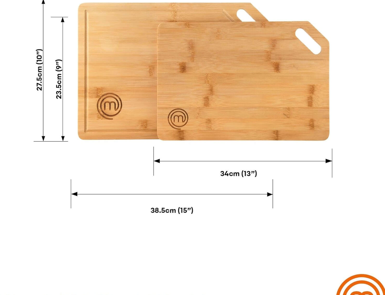 Αυτό το επαγγελματικής ποιότητας σετ επιφανειών μπαμπού 2 τεμαχίων είναι επίσημο προϊόν της τηλεοπτικής σειράς MasterChef.