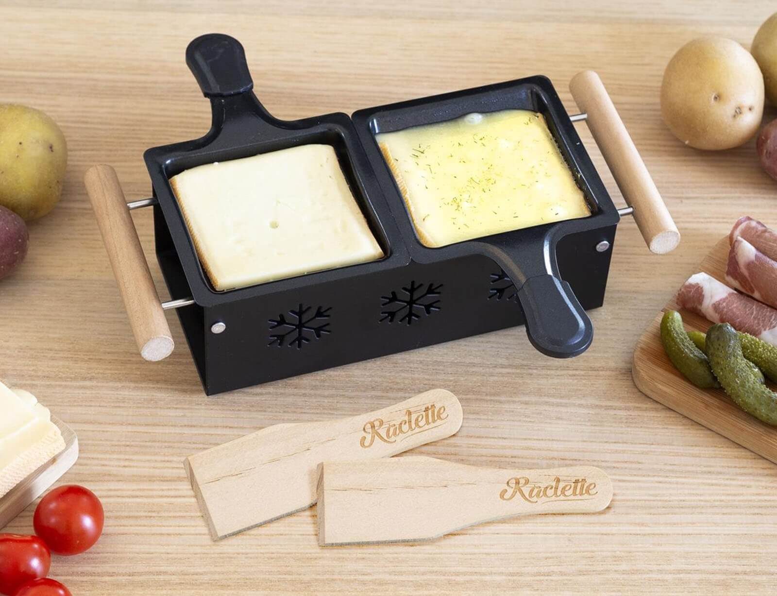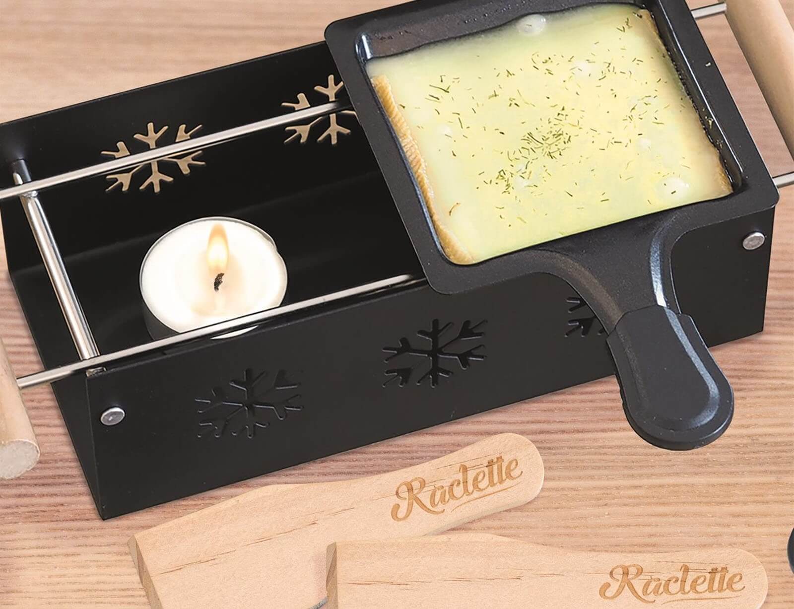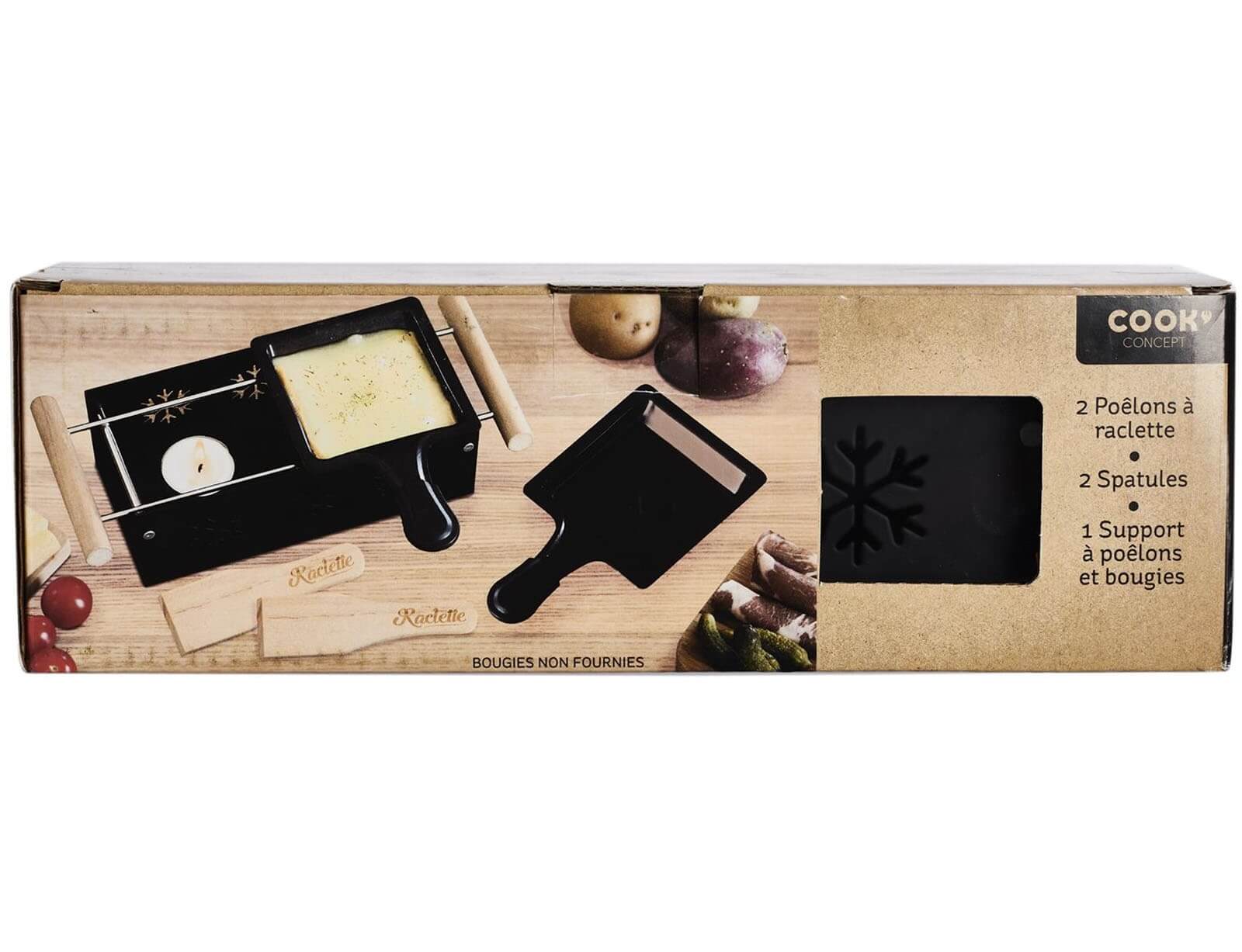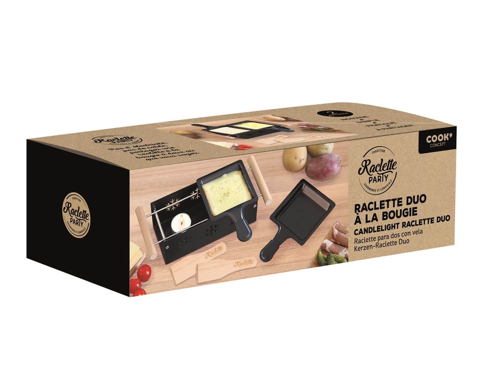 Με τη συσκευή Raclette της Cook Concept μπορείτε να απολαύσετε με τους καλεσμένους σας γλυκά και αλμυρά εδέσματα. Πέρα από τα Raclette τυριών έχετε τη δυνατότητα να ζεστάνετε στο σκεύος και σοκολάτα για να σερβίρετε σε οποιαδήποτε συνάθροιση με φίλους. Είναι κατασκευασμένο από μέταλλο και ξύλο, ενώ στη βάση υπάρχουν υποδοχές για κεριά ώστε να το απολαμβάνετε όπου και όποτε επιθυμείτε. Στη συσκευασία περιλαμβάνονται δύο ξύλινες σπάτουλες.