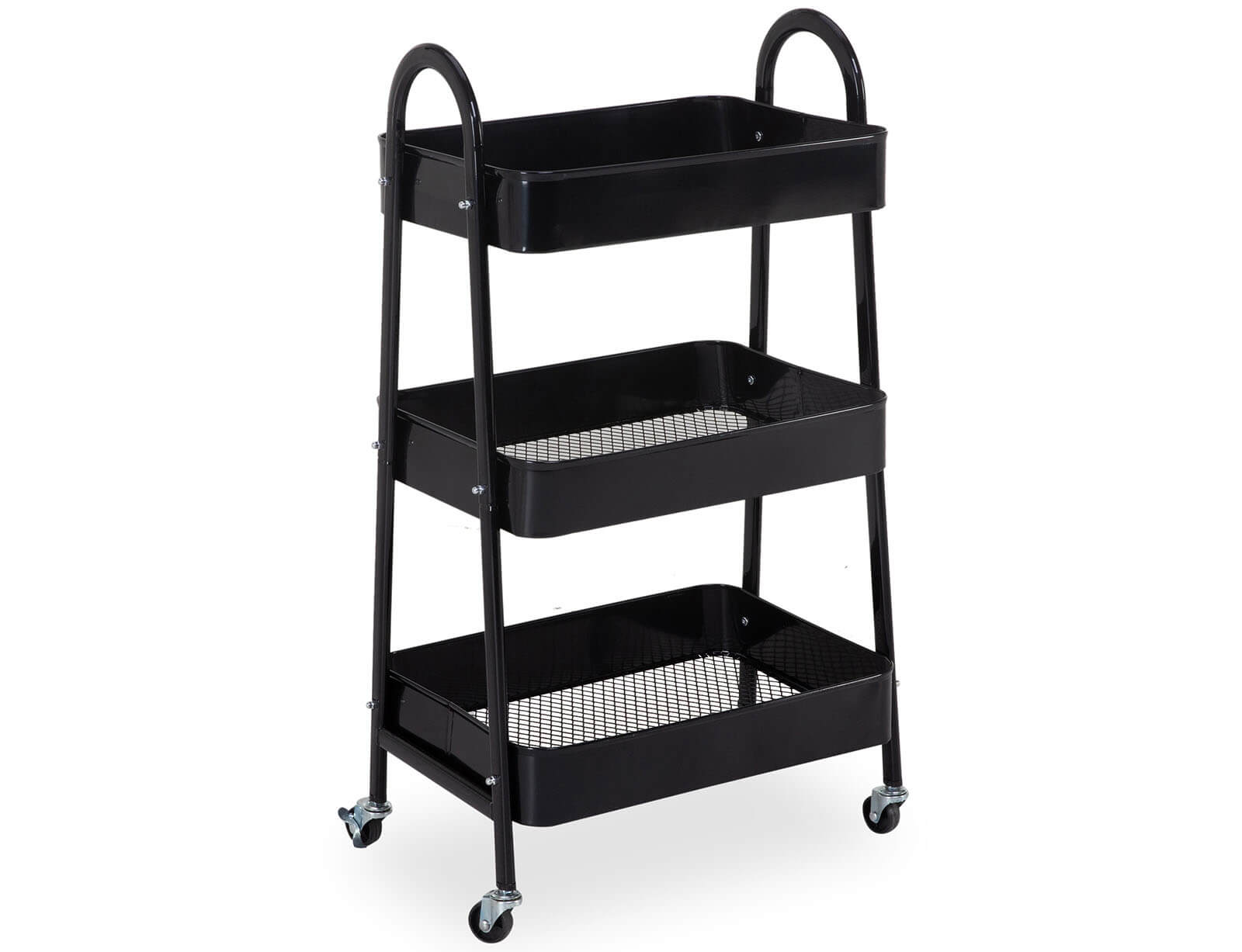 Τρόλεϊ αποθήκευσης και τακτοποίησης κουζίνας Storage Solutions με 3 ράφια, από Μέταλλο, 44x31.5x79.5cm - Black