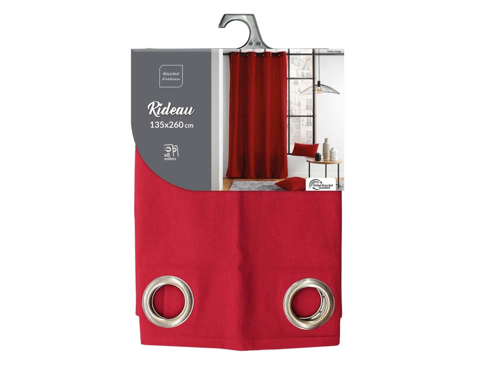 Κουρτίνα Mέτριας Σκίασης Twily Douceur d'intérieur με τρουκς και διαστάσεις 135x260cm - Red