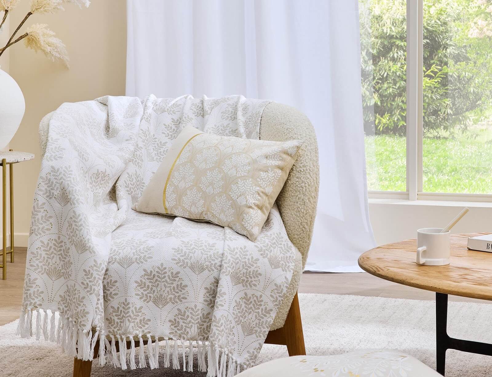 Εικόνα Διακοσμητικό Μαξιλάρι Majestia Douceur d'intérieur με μεταλλικό σχέδιο και διαστάσεις 30x50cm - Beige