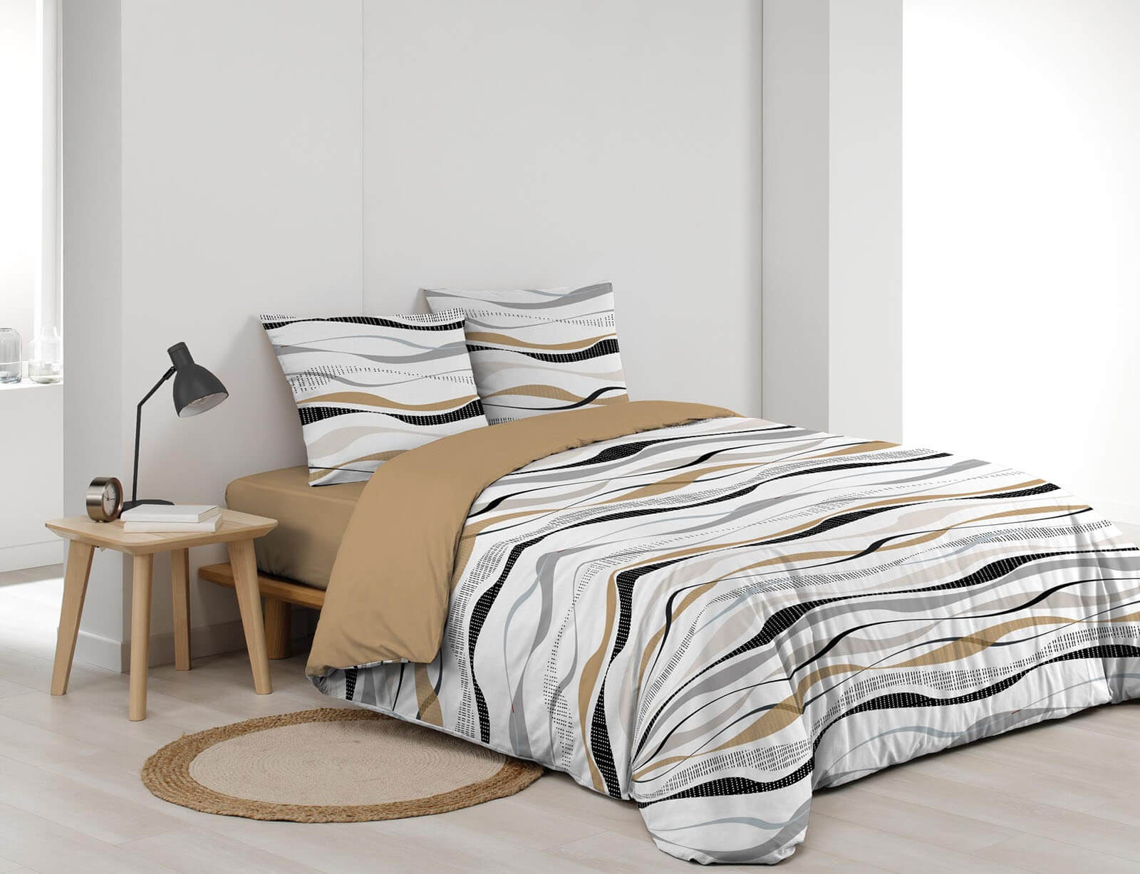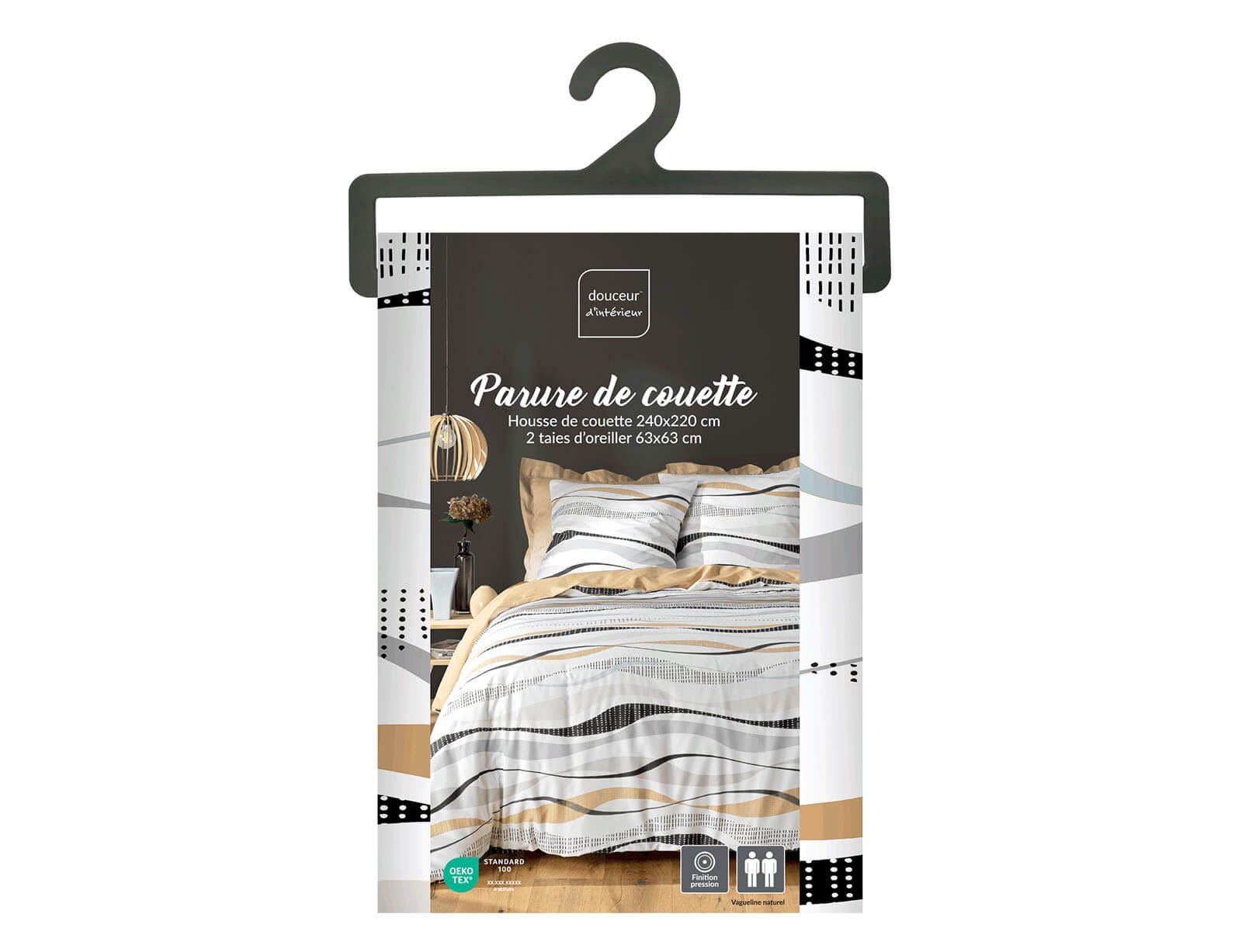 Εικόνα Σετ Υπέρδιπλη Παπλωματοθήκη & 2 Μαξιλαροθήκες Vagueline Douceur d'intérieur από πολυεστέρα και βαμβάκι 52TC, με διαστάσεις 220x240cm