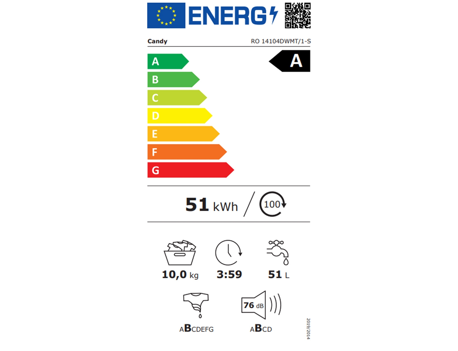 Πλυντήριο ρούχων Candy RO 14104DWMT/1-S με Κινητήρα Inverter, Wi-Fi, Bluetooth, χωρητικότητα 10kg, 1400rpm και ενεργειακή κλάση A