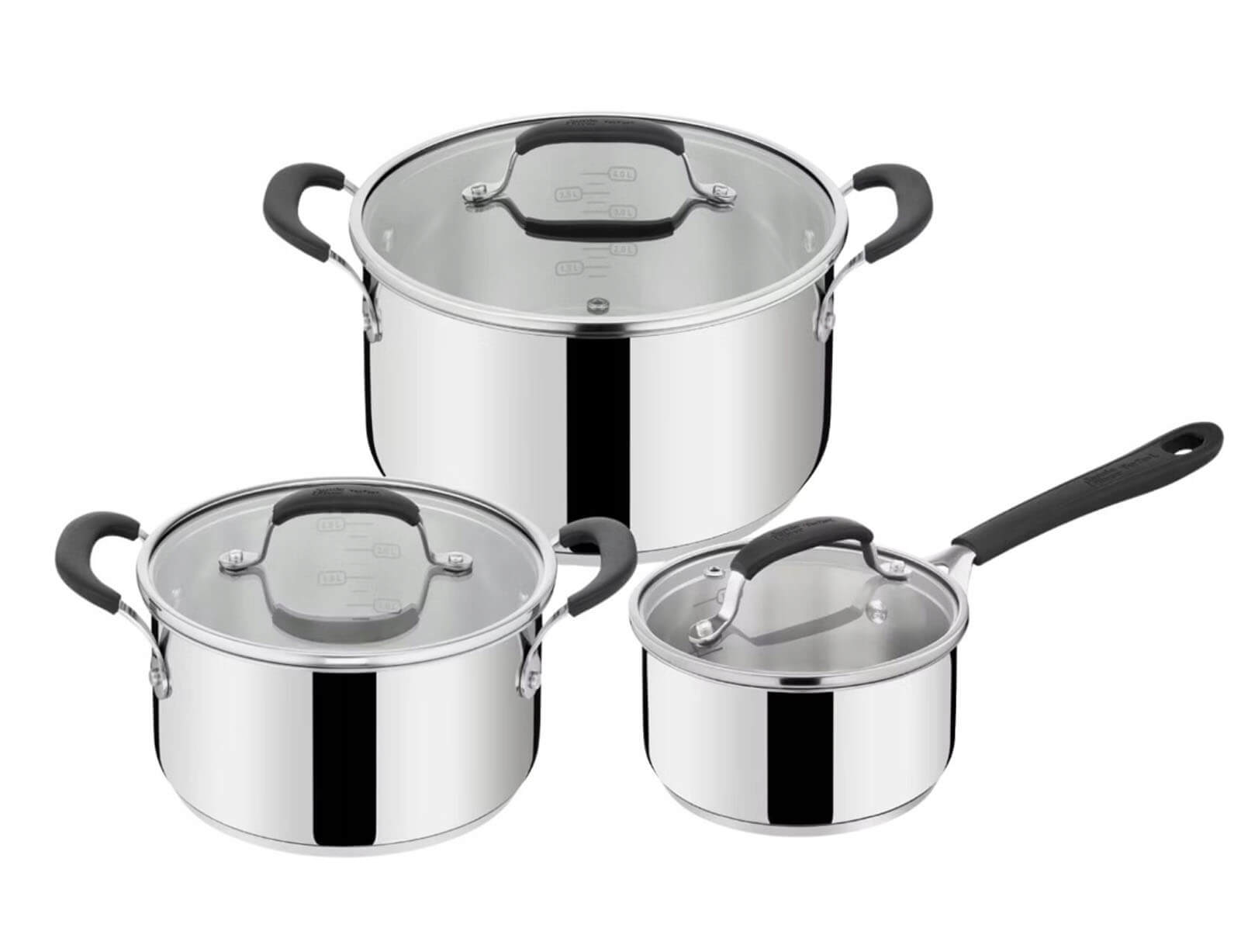 - Τεμάχια: 6 (3 κατσαρόλες, 3 καπάκια)
