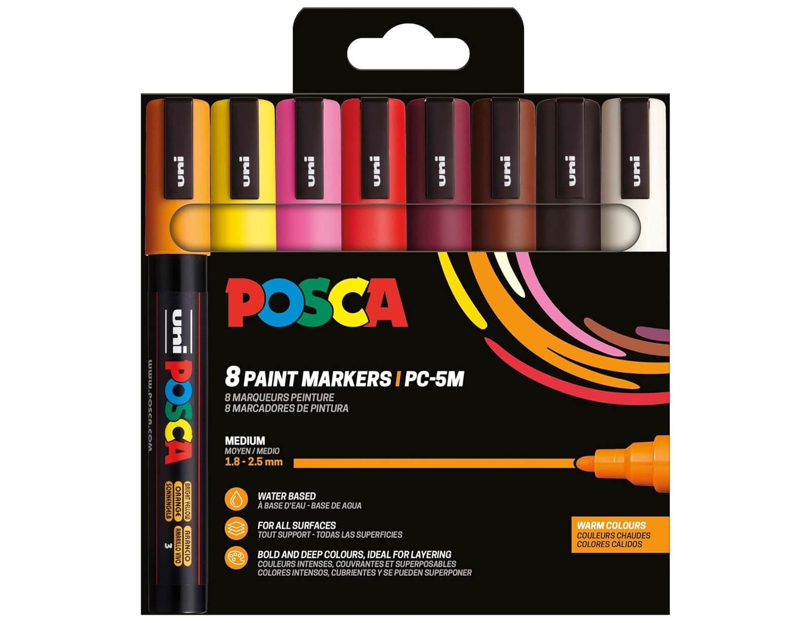 Μαρκαδόροι Σχεδίου Uni Posca PC-5M Warm Medium με πάχος μύτης 1.8-2.5mm - 8 τεμάχια