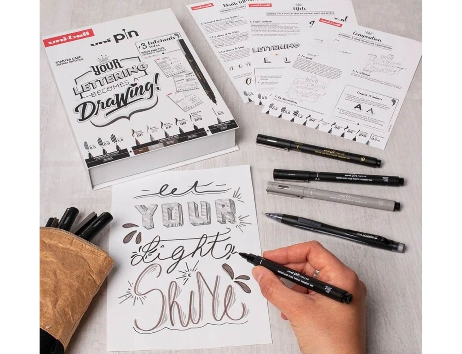 - 3× Μαύροι Μαρκαδόροι Fineliner – με πάχος γραμμής 0.5mm, 0.9mm και 1.2mm: Ιδανικοί για σταθερές, έντονες γραμμές και δημιουργικό layout lettering.