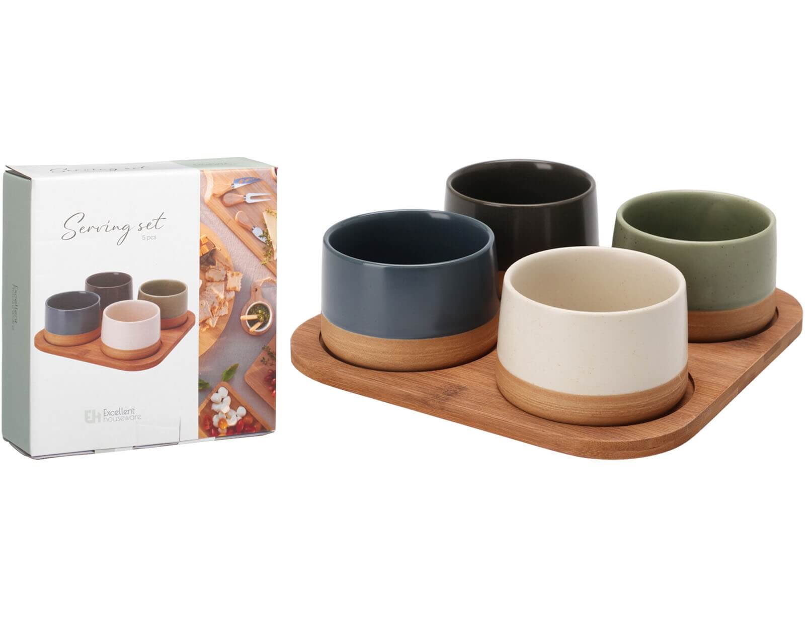 - Tεμάχια: 5 (4 μπωλ και 1 δίσκος)