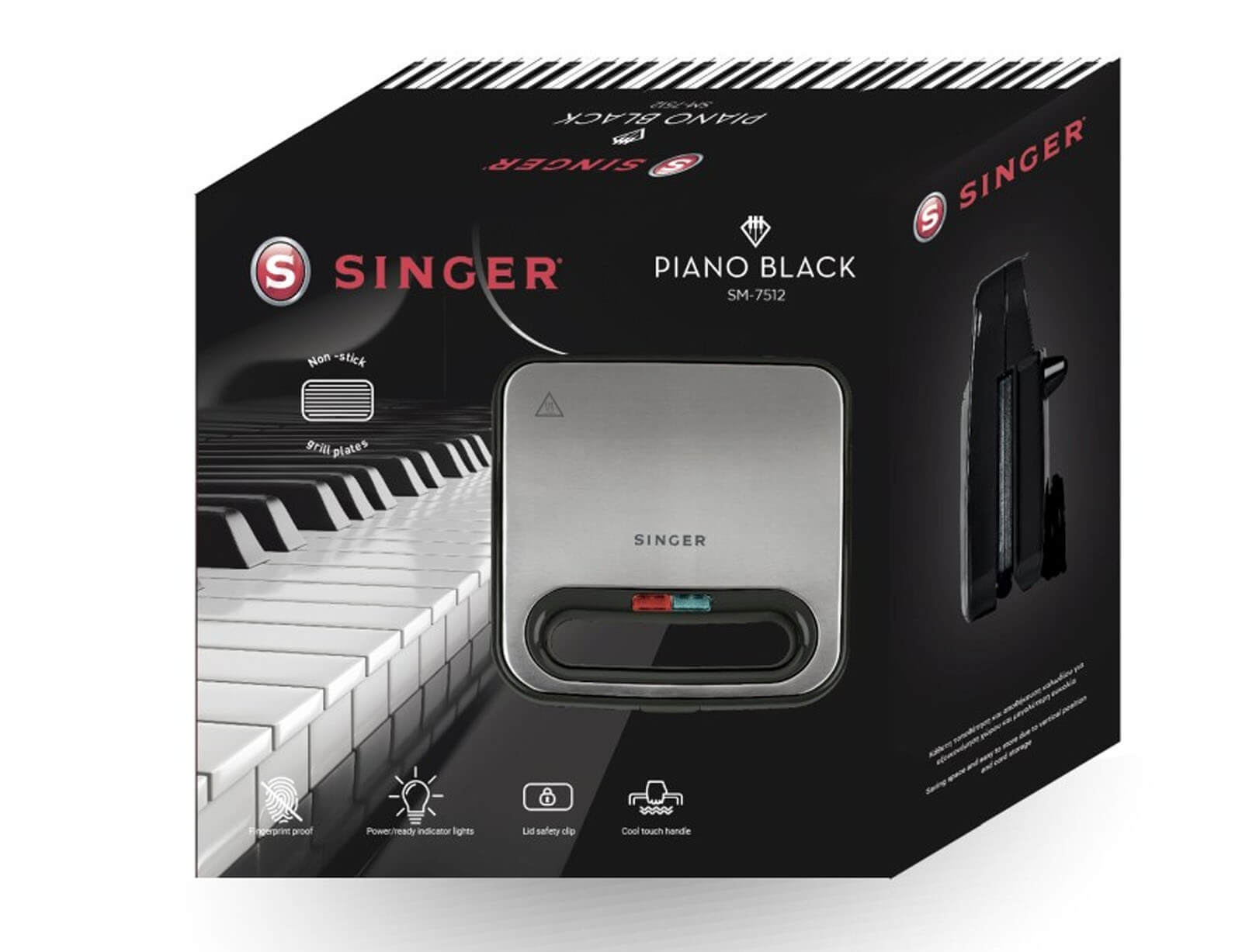 Τοστιέρα Singer SM-7512 με ισχύ 750W και χωρητικότητα 2 τοστ - Piano Black