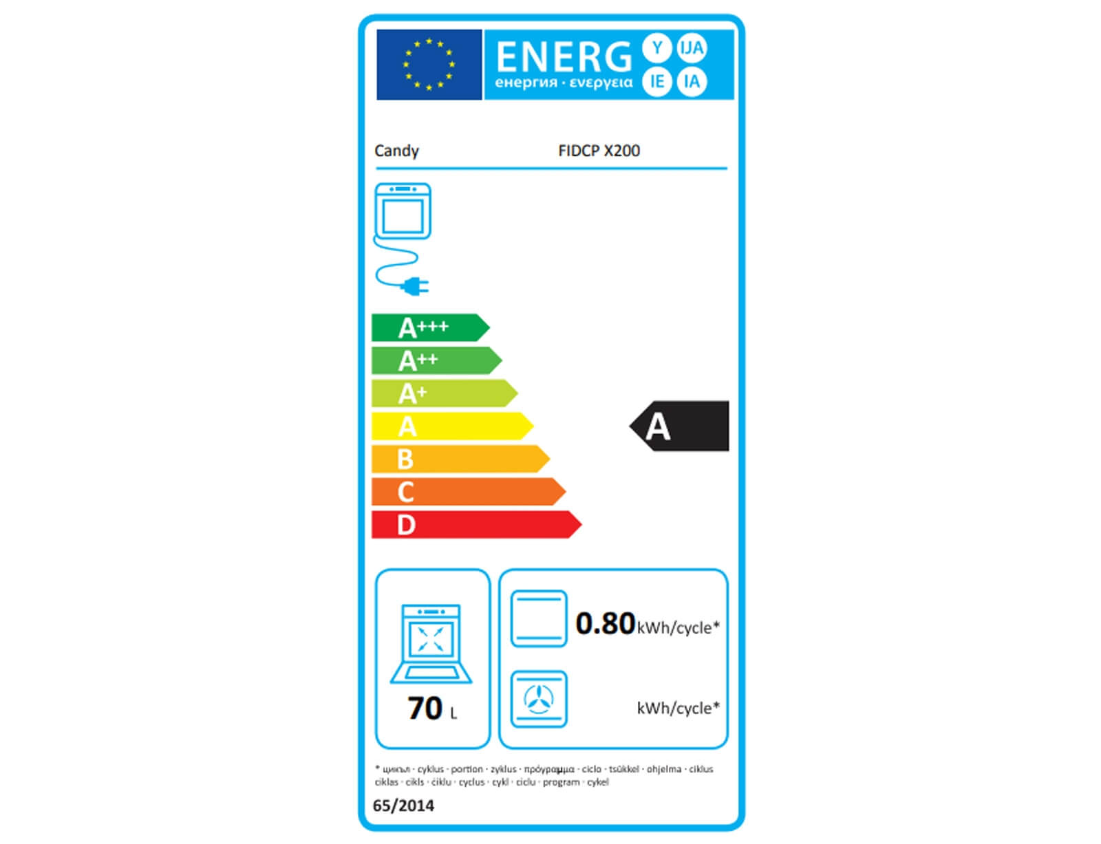 | Χωρητικότητα Φούρνου | 70 L |