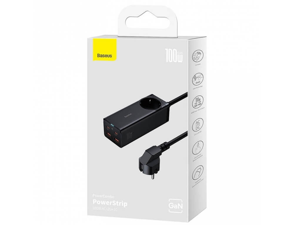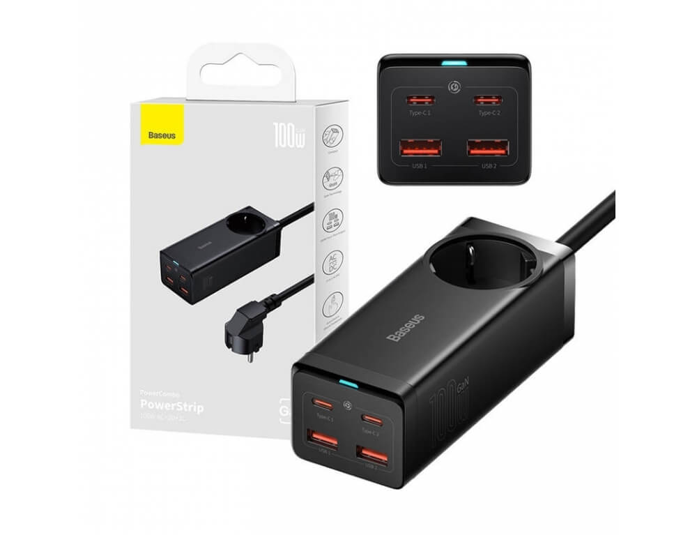 Φορτιστής/Πολύπριζο Baseus GaN3 Pro - 2x USB-C , 2x USB - 100W - Μαύρο