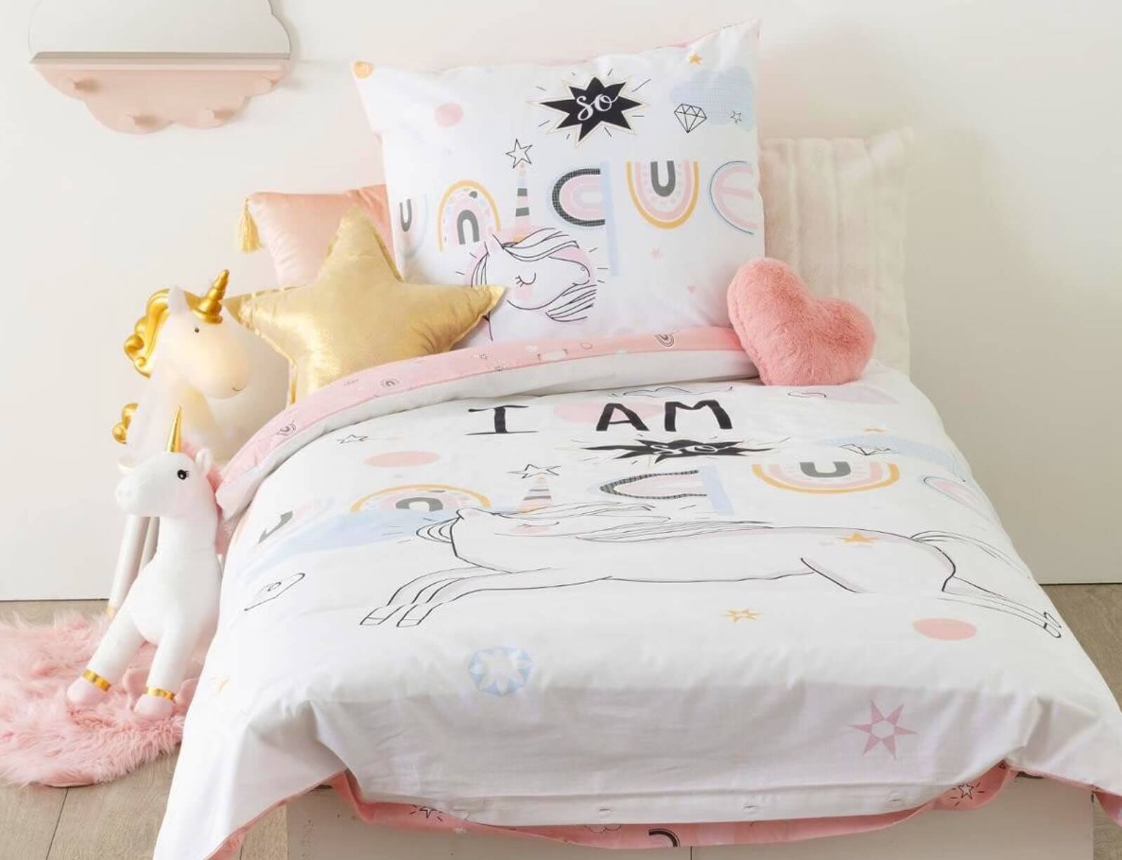 Σετ Μονή Παπλωματοθήκη & Μαξιλαροθήκη Unicorn Atmosphera 2 όψεων, από βαμβάκι 57TC, με διαστάσεις 140x200cm