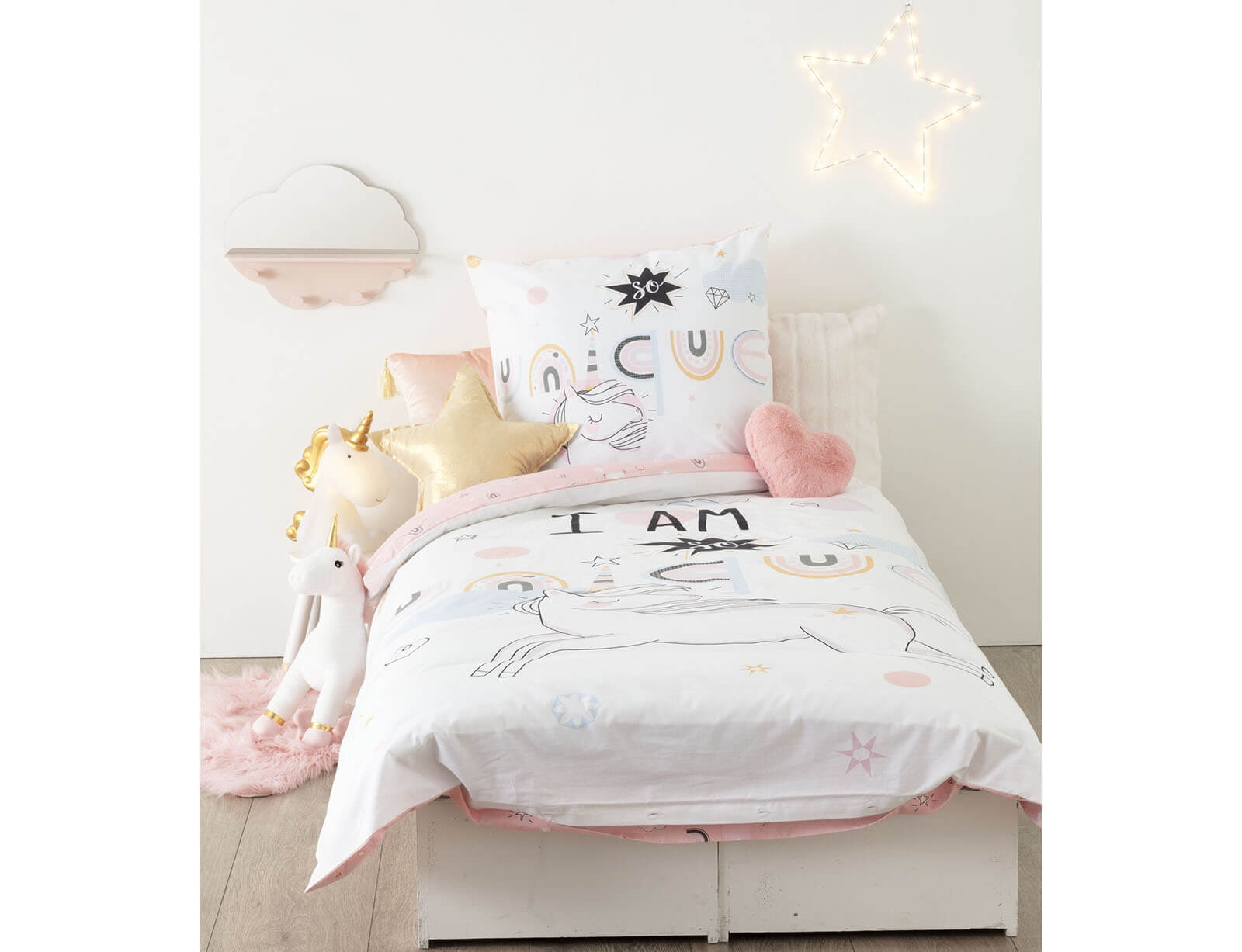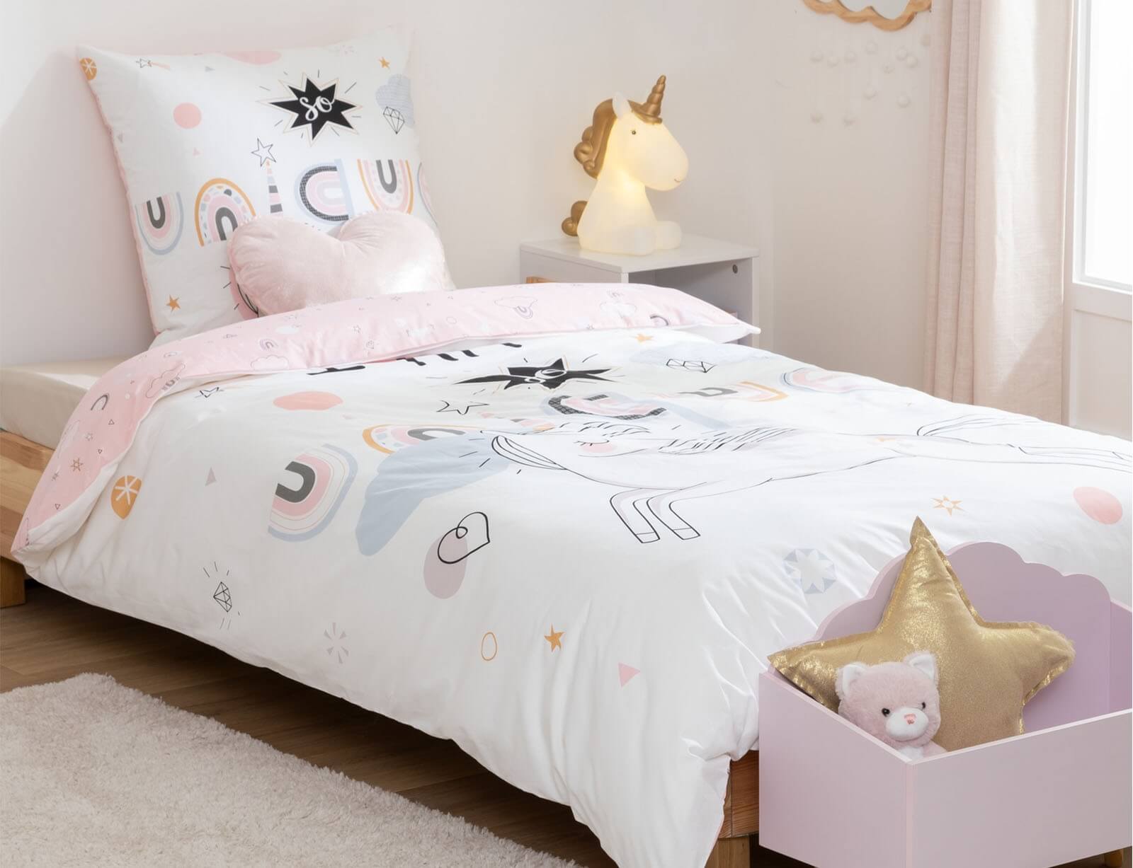 Εικόνα Σετ Μονή Παπλωματοθήκη & Μαξιλαροθήκη Unicorn Atmosphera 2 όψεων, από βαμβάκι 57TC, με διαστάσεις 140x200cm