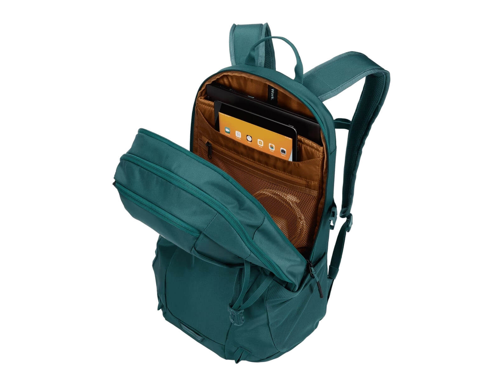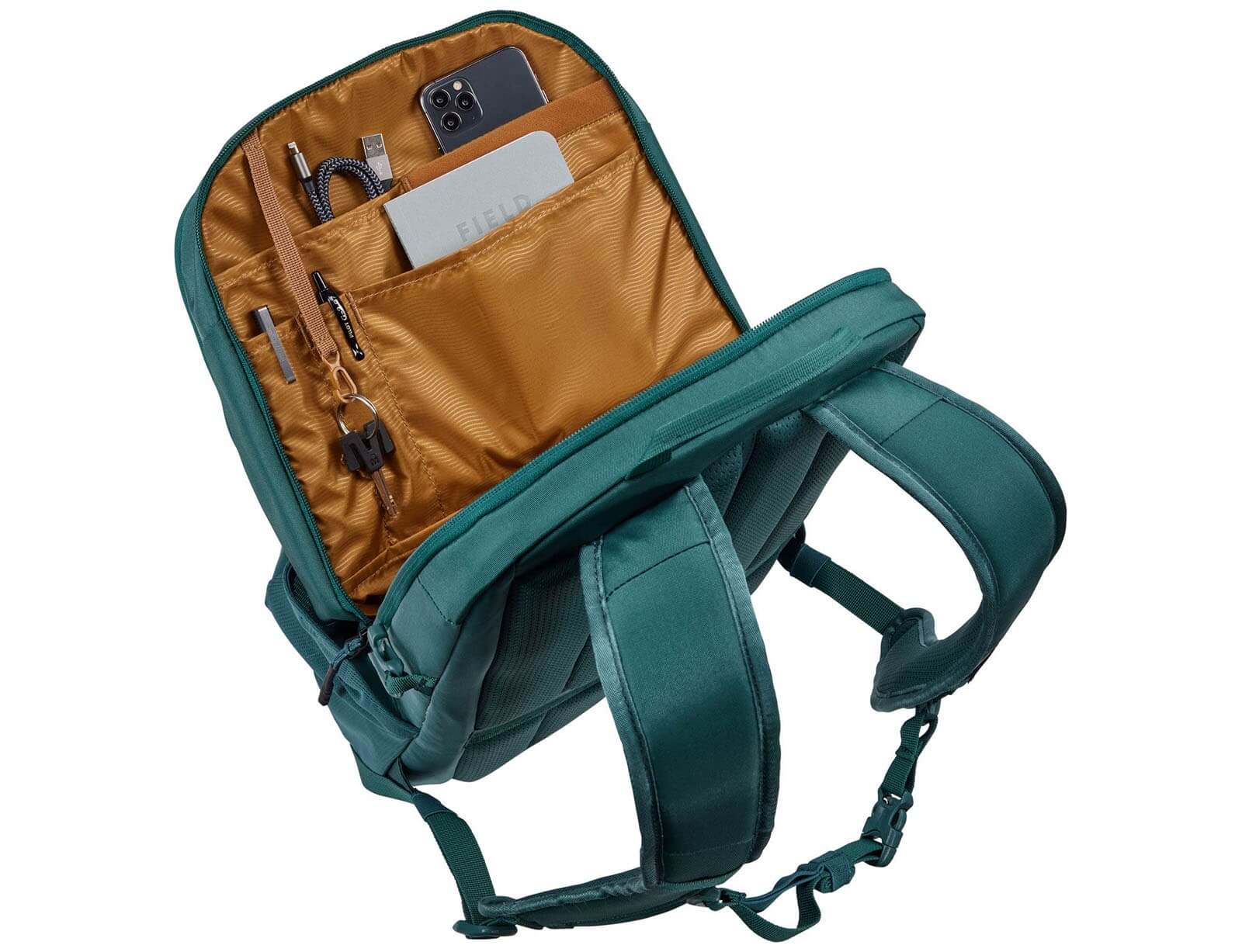 - Διαθέτει στο πάνω μέρος μικρό χώρισμα με φερμουάρ για γυαλιά και κινητό με επιπλέον θήκες στο πλάι