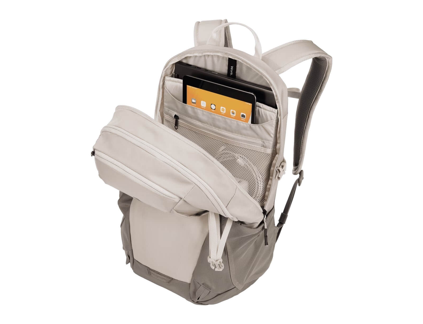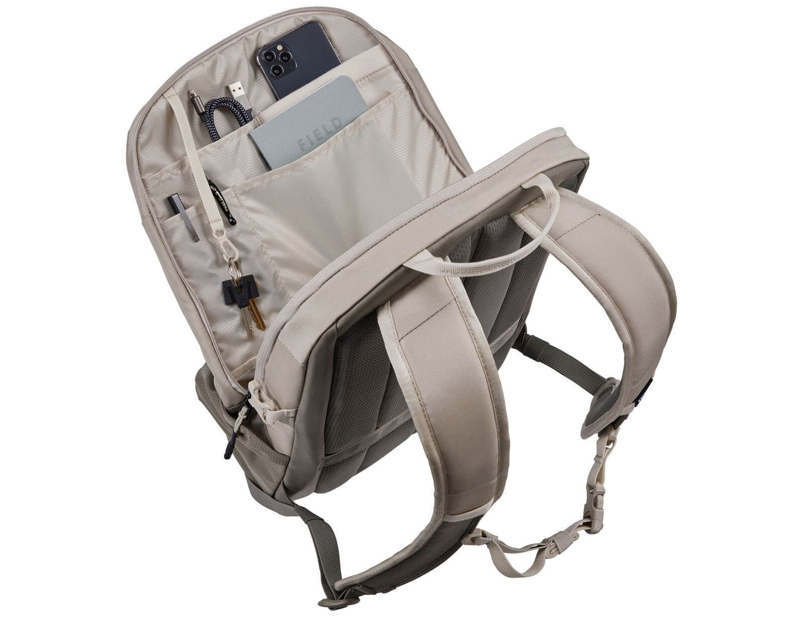 - Διαθέτει στο πάνω μέρος μικρό χώρισμα με φερμουάρ για γυαλιά και κινητό με επιπλέον θήκες στο πλάι