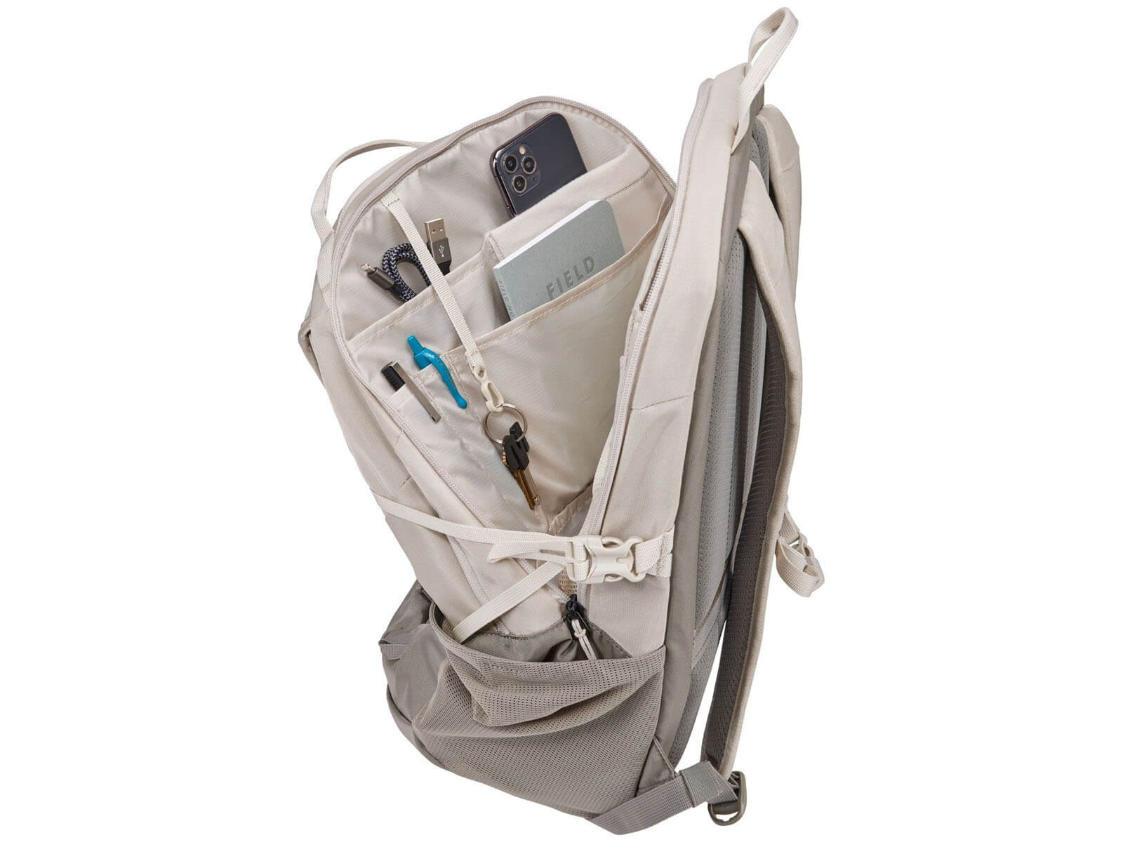 - Διαθέτει στο πάνω μέρος μικρό χώρισμα με φερμουάρ για γυαλιά και κινητό με επιπλέον θήκες στο πλάι