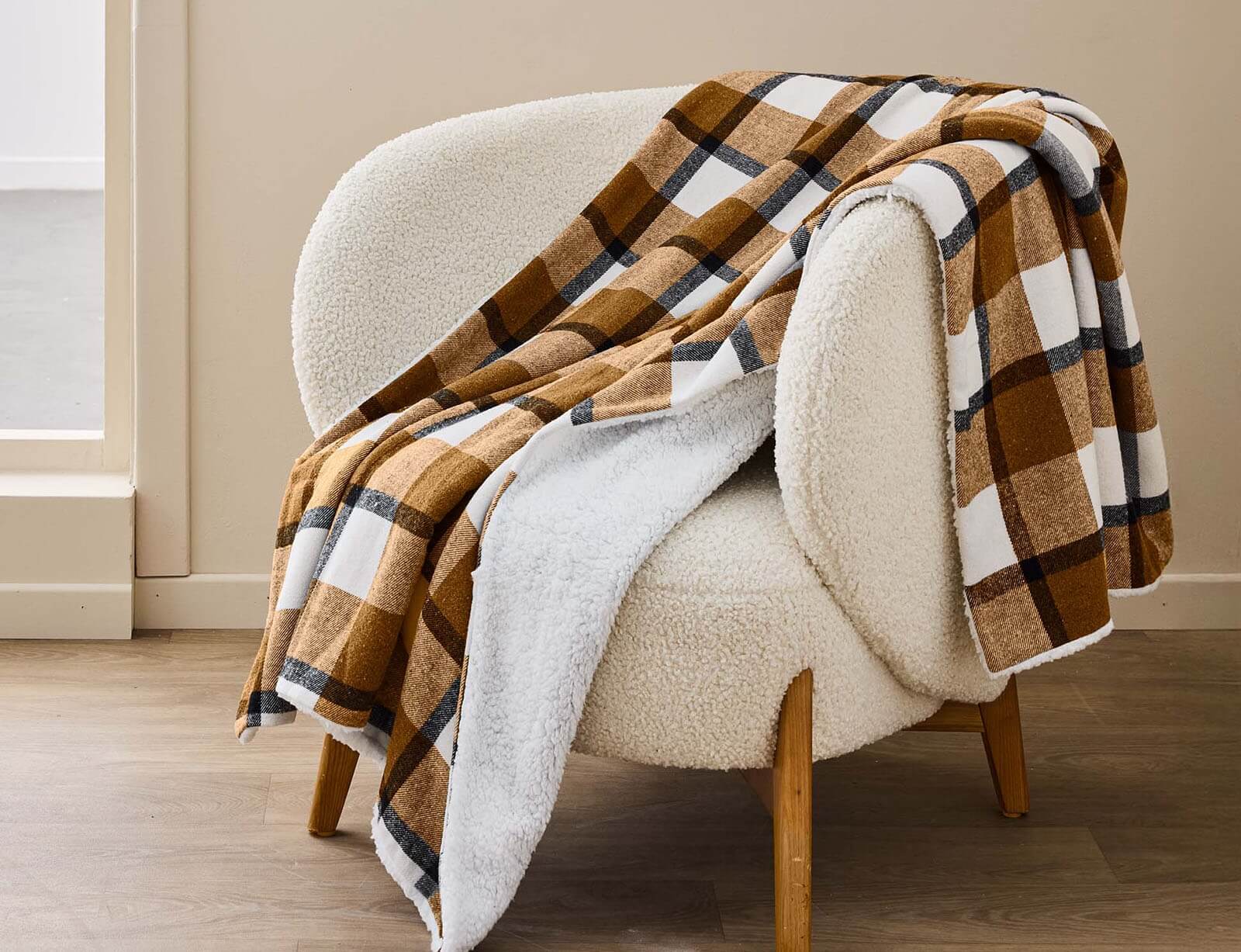 Εικόνα Κουβέρτα Ecossais Douceur d'intérieur με εσωτερική επένδυση sherpa και διαστάσεις 125x150cm - Camel