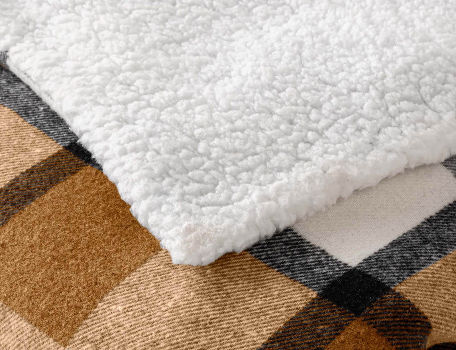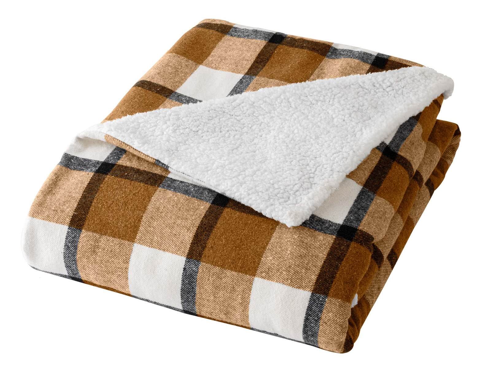 Κουβέρτα Ecossais Douceur d'intérieur με εσωτερική επένδυση sherpa και διαστάσεις 125x150cm - Camel