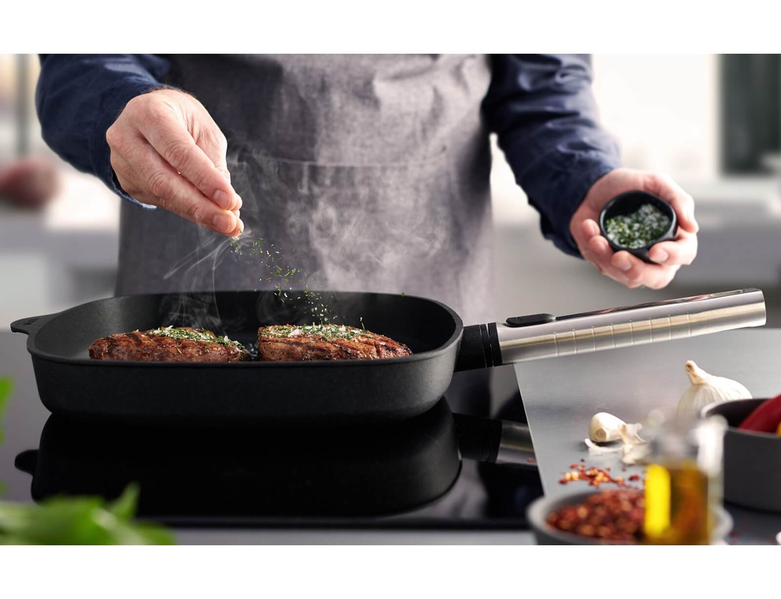 - Πολυτελής αποσπώμενη λαβή από ανοξείδωτο ατσάλι. Καθαρίζεται & αποθηκεύεται εύκολα