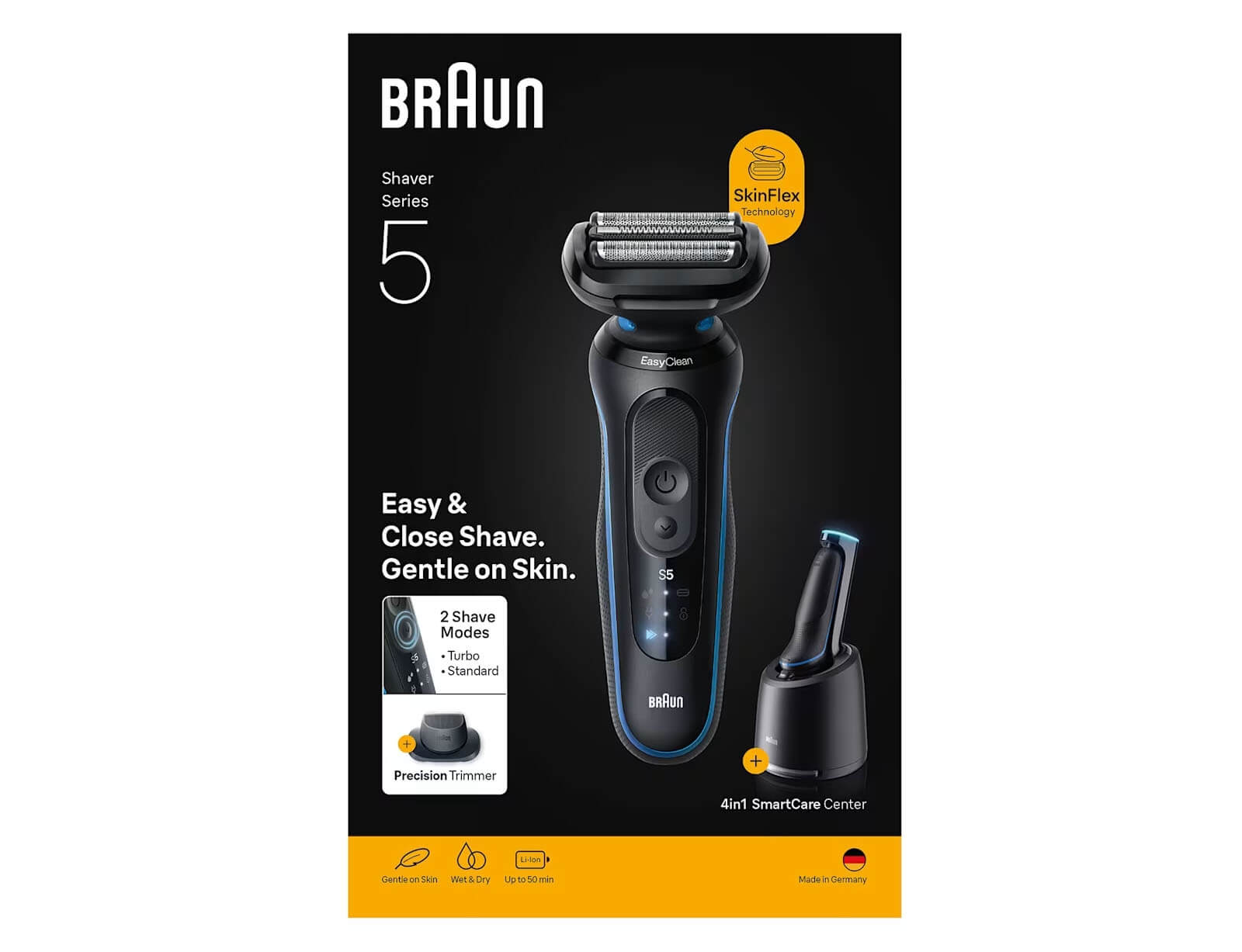 Η μπαταρία προσφέρει έως και 50–60 λεπτά λειτουργίας με μία φόρτιση, ενώ η γρήγορη φόρτιση των 5 λεπτών είναι ιδανική για ένα πλήρες ξύρισμα της τελευταίας στιγμής.