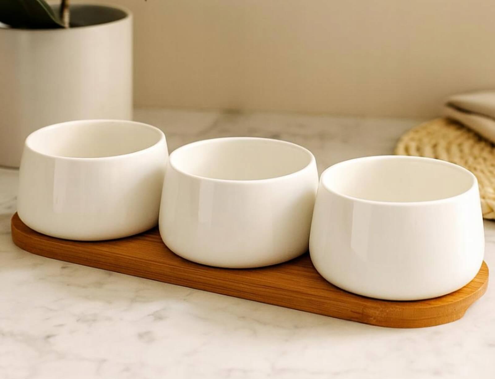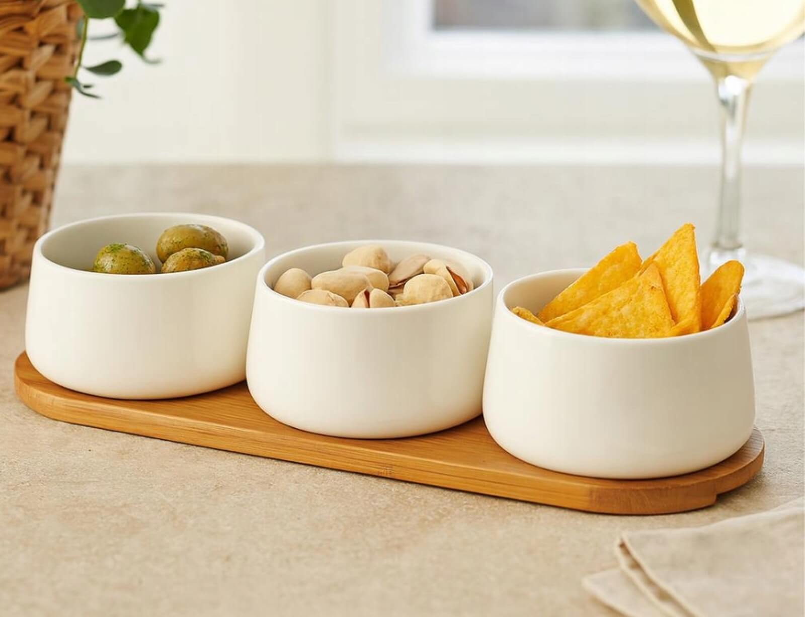 - Tεμάχια: 4 (3 μπολ και 1 δίσκος)