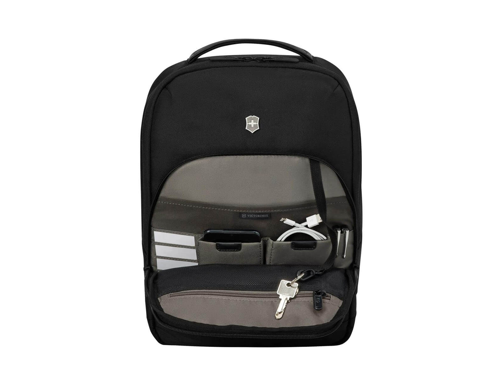 - Διαθέτει αφαιρούμενη θήκη οργάνωσης βασικών αντικειμένων για φορτιστές, καλώδια, USB, στυλό και άλλα.