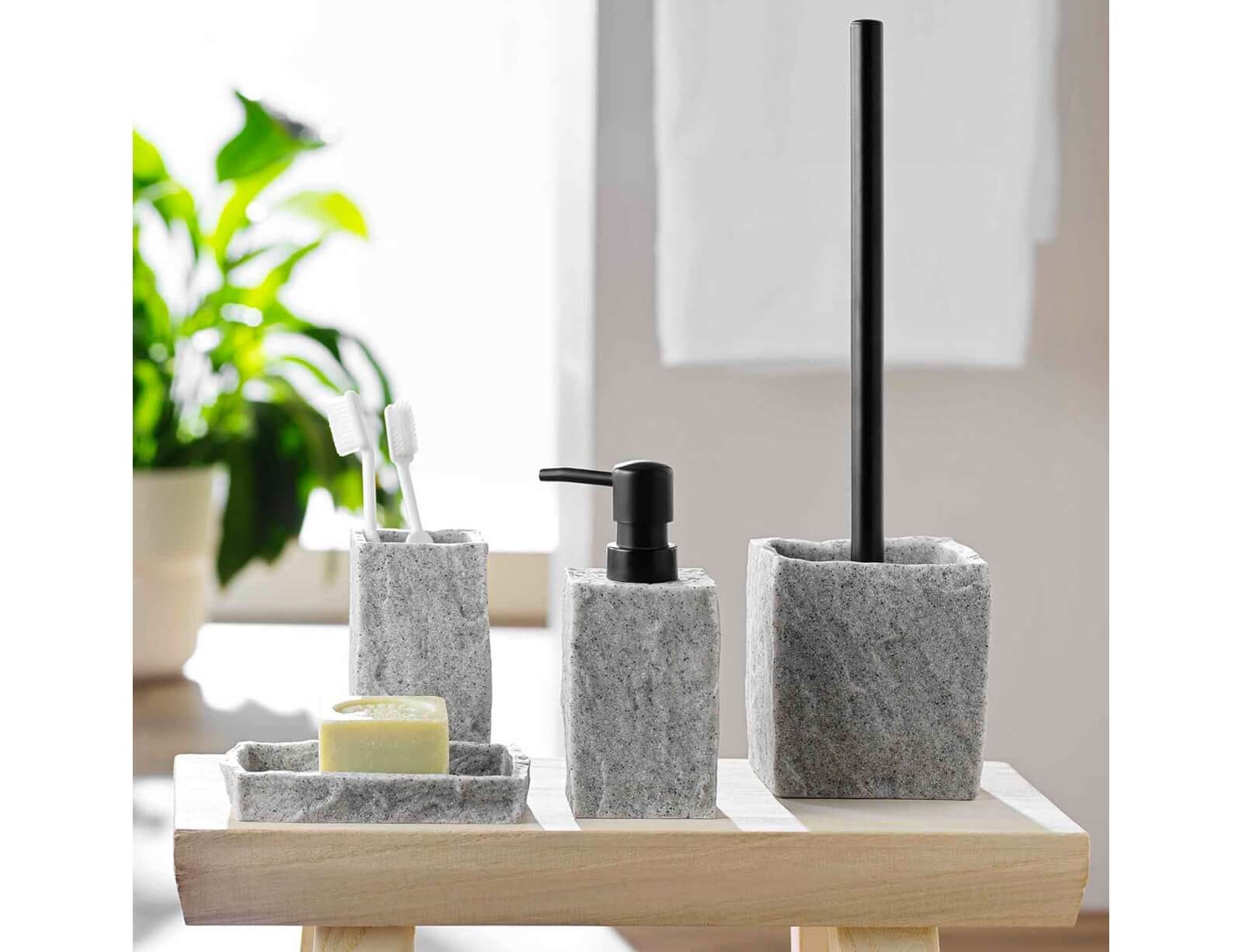Ποτηροθήκη μπάνιου της εταιρείας Douceur d'intérieur, κατασκευασμένη από Polyresin με όψη πέτρας, η οποία είναι το κατάλληλο αξεσουάρ ώστε να τοποθετείτε τις οδοντόβουρτσες, την οδοντόκρεμα ή οτιδήποτε άλλο χρειάζεται να τακτοποιήσετε. Θα σας βοηθήσει στο να έχετε πάντα ένα οργανωμένο μπάνιο και να επιτυγχάνεται μέγιστη υγιεινή, αφού τα αντικείμενα σας δεν θα είναι εκτεθειμένα οπουδήποτε στον χώρο. Η τοποθέτηση της είναι επικαθήμενη, και καλό θα είναι να τοποθετείται όσο το δυνατόν πιο κοντά στον νιπτήρα ώστε να έχετε άμεση πρόσβαση στο περιεχόμενο.