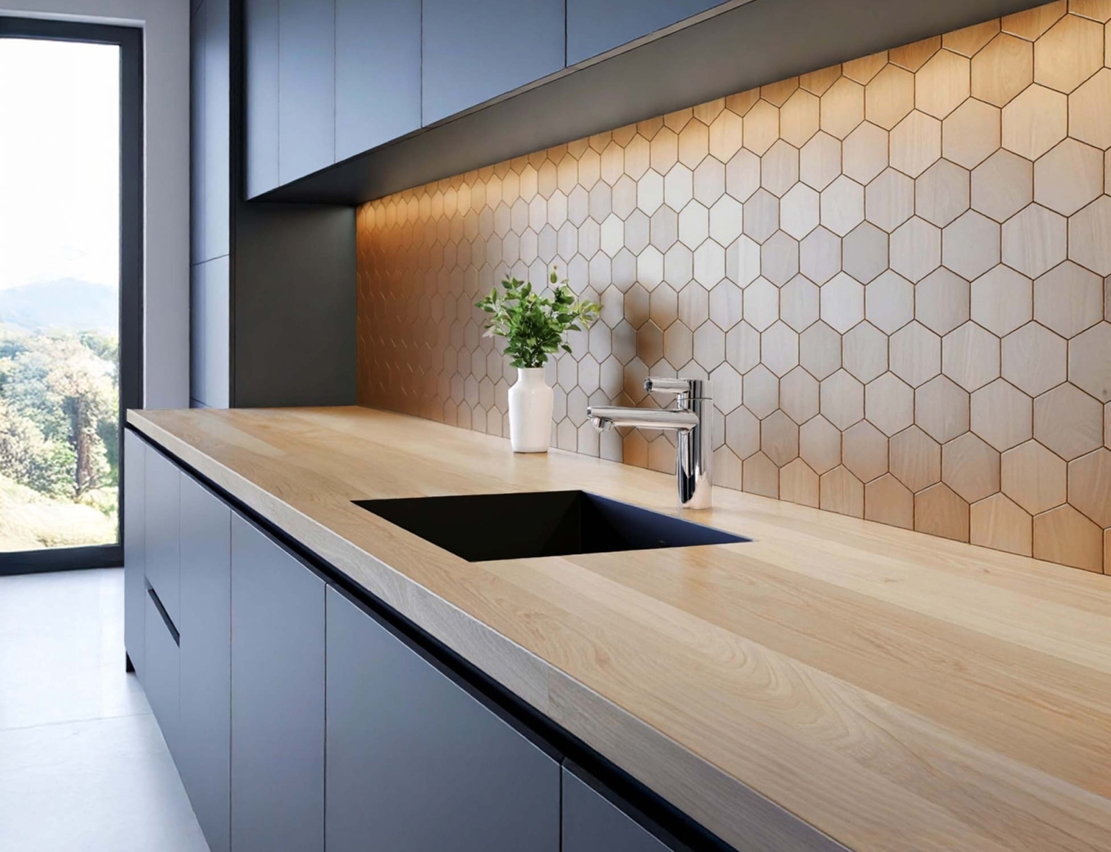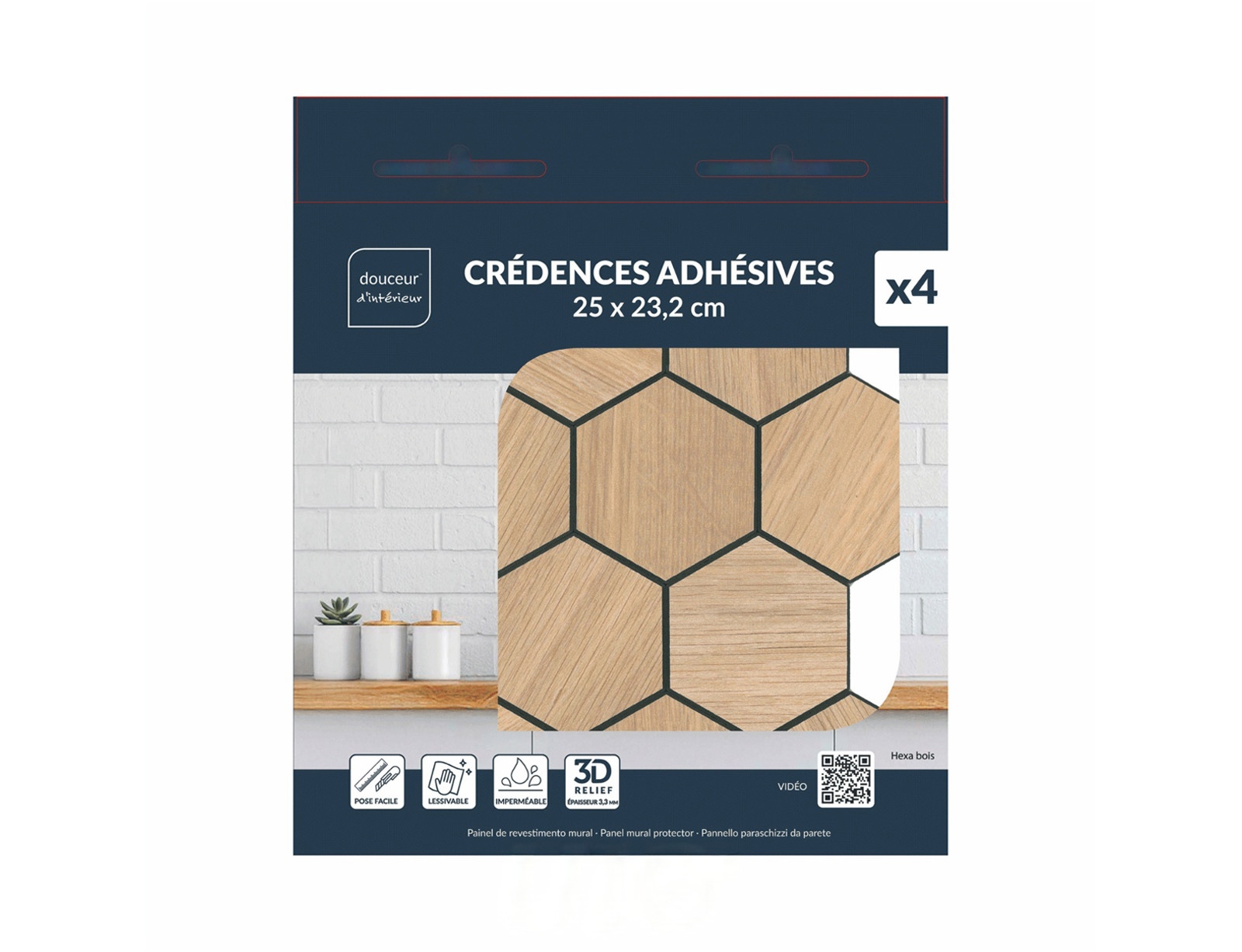Αυτοκόλλητα Πλακάκια με Όψη Ξύλου Hexa Douceur d'intérieur με διαστάσεις 25x23.2cm - Natural - 4 τεμάχια