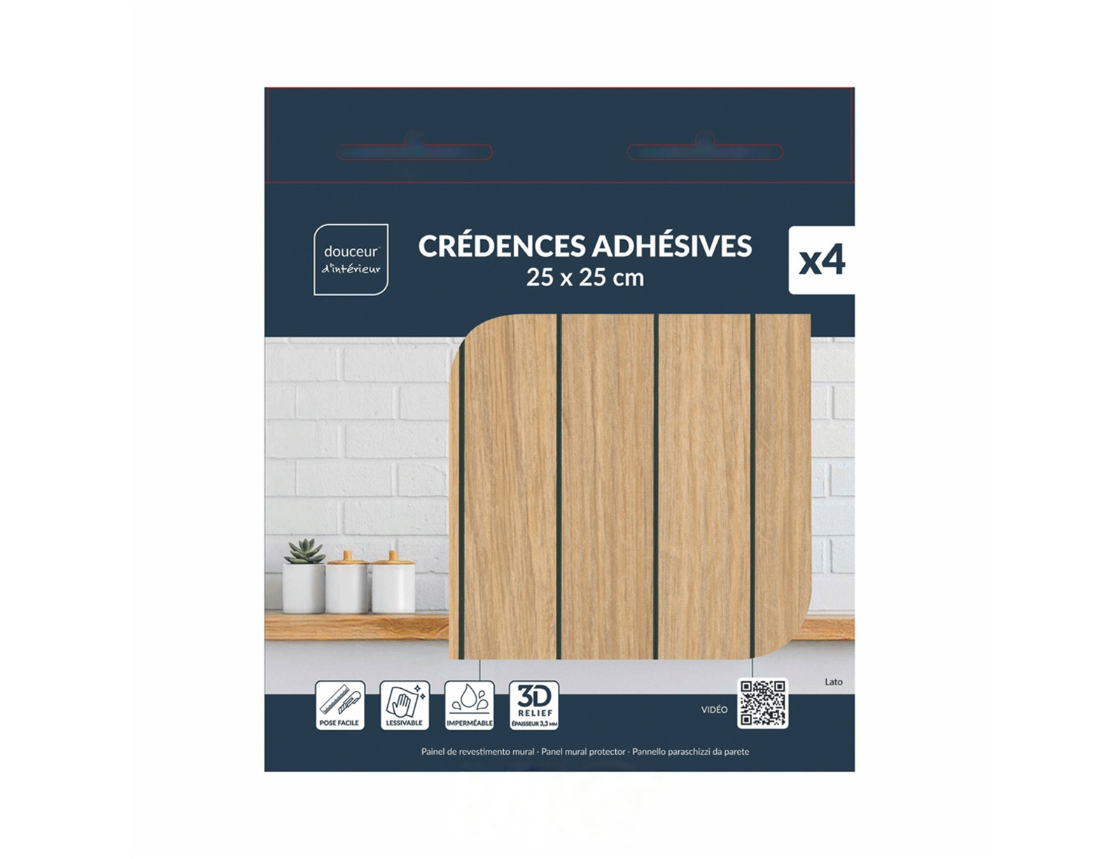 Αυτοκόλλητα Πλακάκια με Όψη Ξύλου Lato Douceur d'intérieur με διαστάσεις 25x25cm - Natural - 4 τεμάχια