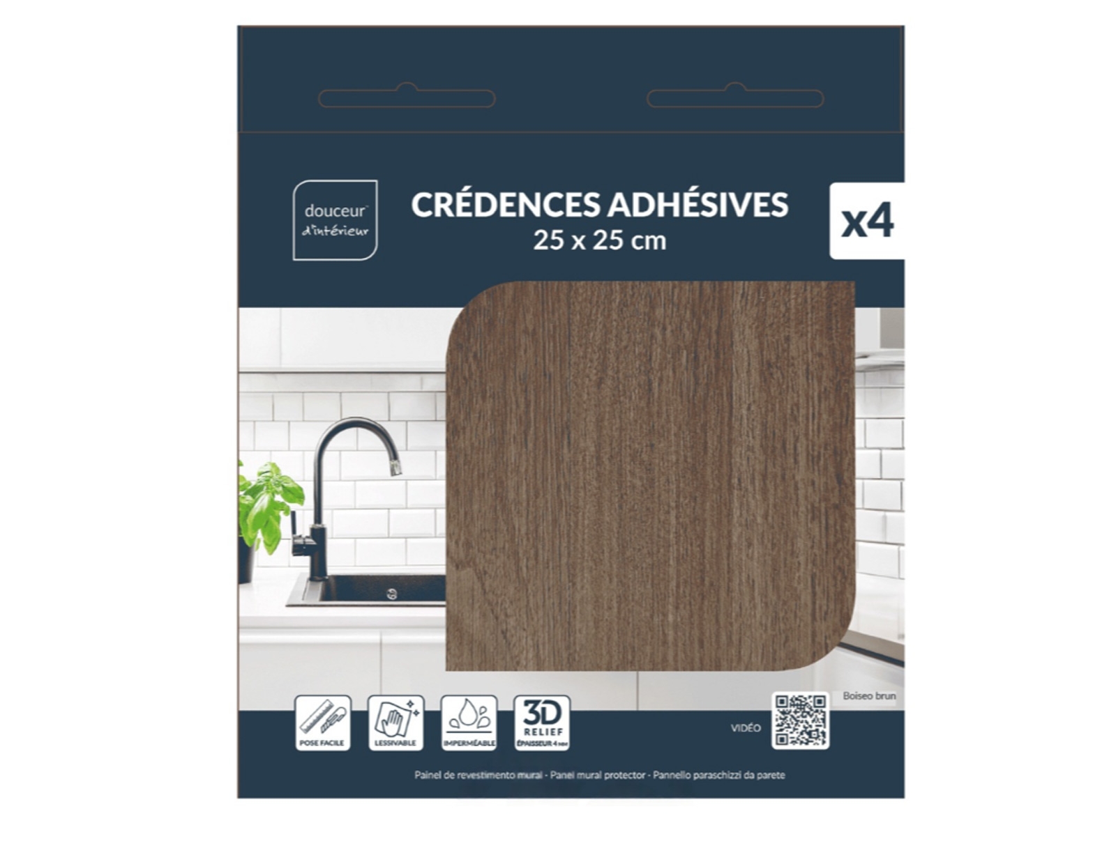 Εικόνα Αυτοκόλλητα Πλακάκια με Όψη Ξύλου Boiseo Douceur d'intérieur με διαστάσεις 25x25cm - Brown - 4 τεμάχια