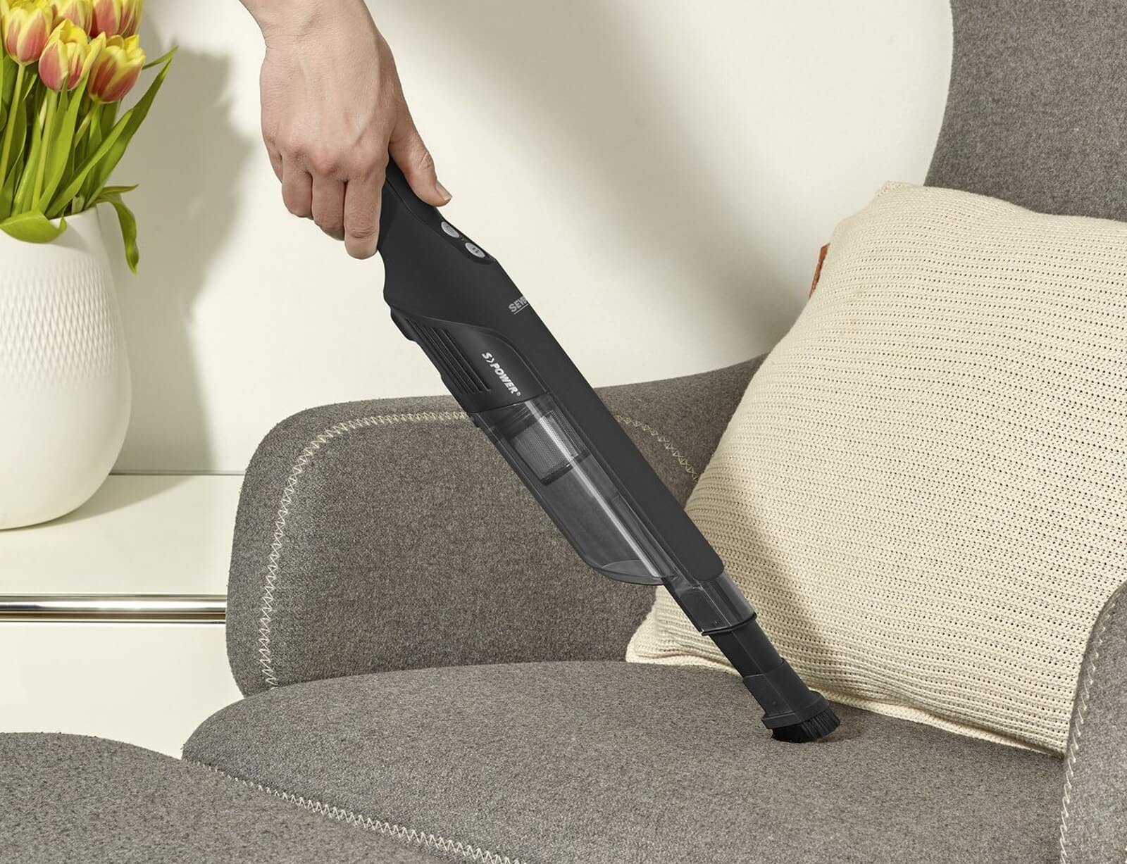 Είτε πρόκειται για σκόνη στο πληκτρολόγιο του φορητού υπολογιστή, τρίχες σκύλου στα καθίσματα ή ψίχουλα σε σχισμές παρκέ, είναι ο ιδανικός βοηθός σε όλες τις περιπτώσεις. Ελαφρύ και αθόρυβο, το σκουπάκι Severin με τον λεπτό σχεδιασμό μπορεί να φτάσει ακόμη και σε δυσπρόσιτα σημεία. Το εξάρτημα επίπλων είναι ιδανικό για τον καθαρισμό ευαίσθητων επίπλων ή πληκτρολογίων. Ασύρματο και εύχρηστο, είναι επίσης κατάλληλο ως πρακτικό gadget αυτοκινήτου για ταπετσαρίες καθισμάτων. Με τον ισχυρό ψηφιακό κινητήρα του, έχει χρόνο λειτουργίας έως και 30 λεπτά σε οικονομική λειτουργία ή 10 λεπτά σε λειτουργία ισχύος.