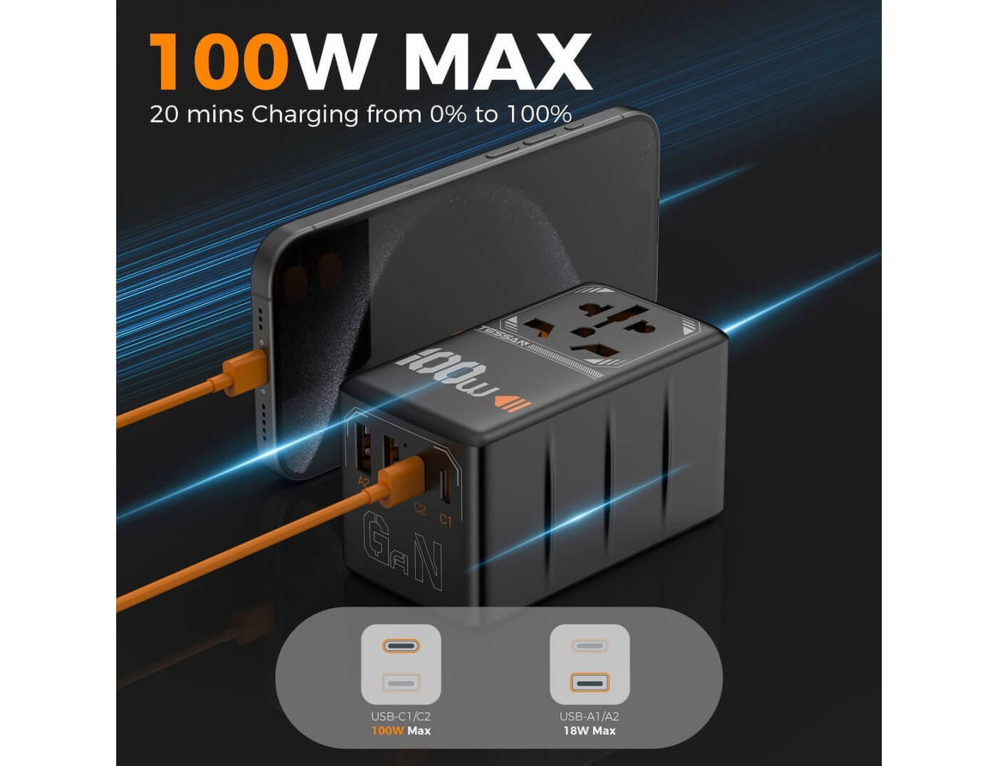 | Watt/Ampere Φόρτισης | • USB-C1/C2: 20~100W, μονή έξοδος 100W Μέγ. |