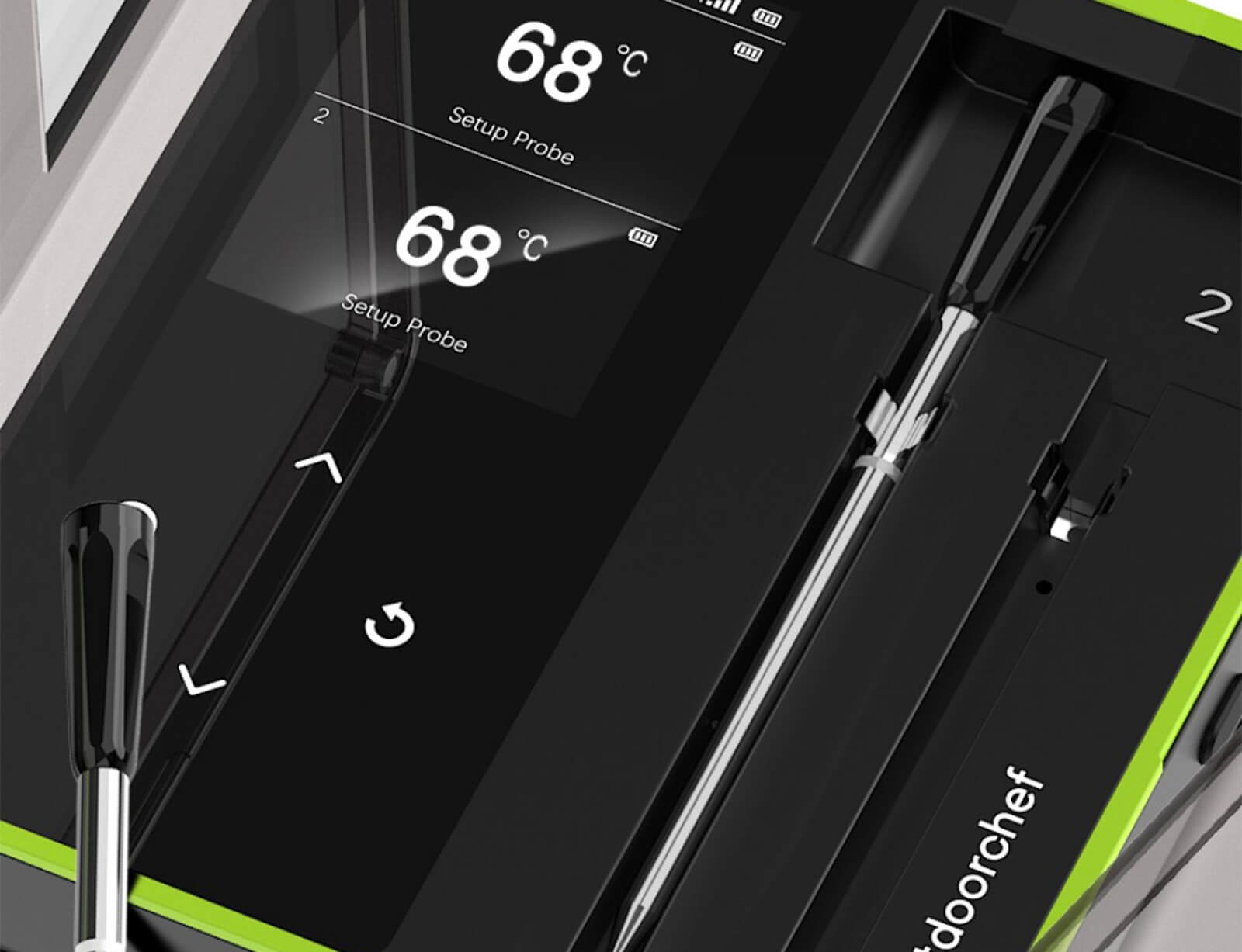 - Διπλοί αισθητήρες στον ανιχνευτή: ένας για τη θερμοκρασία πυρήνα του φαγητού και ένας για τη θερμοκρασία του θαλάμου του γκριλ