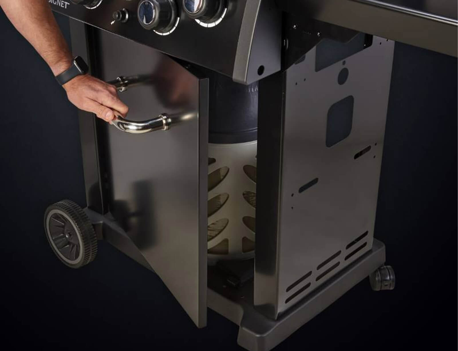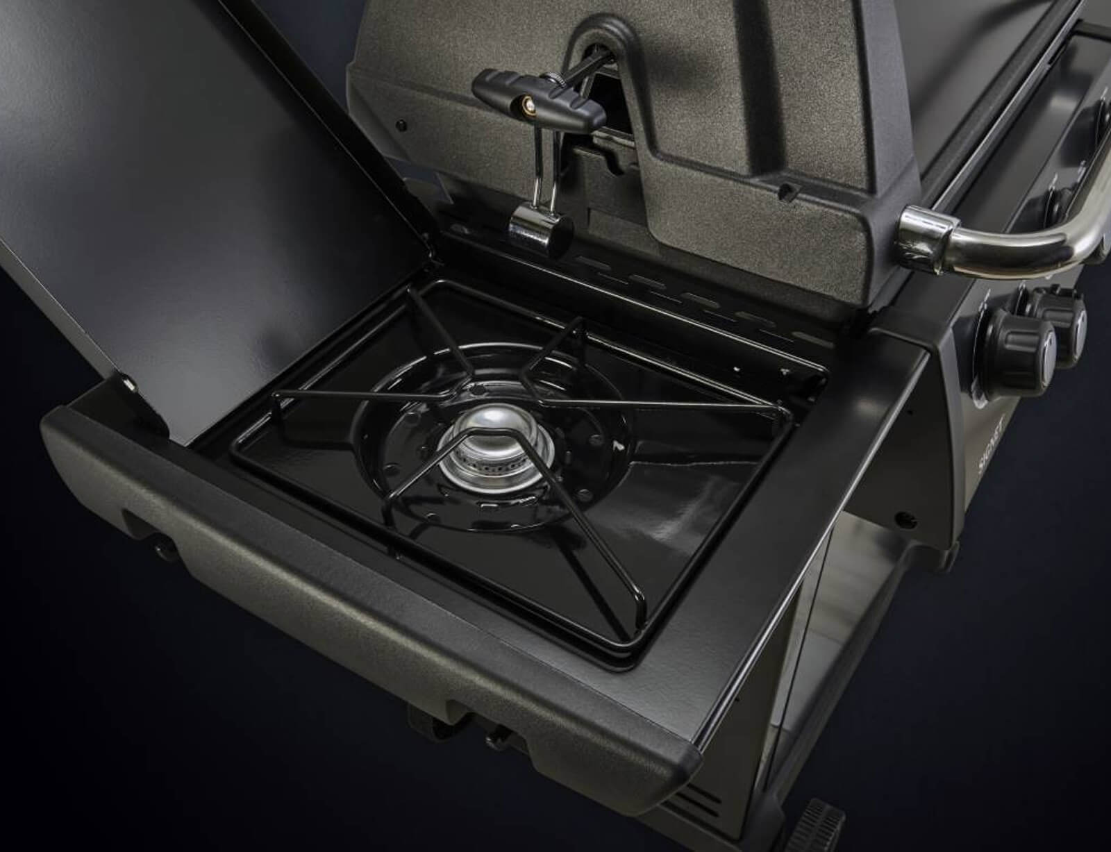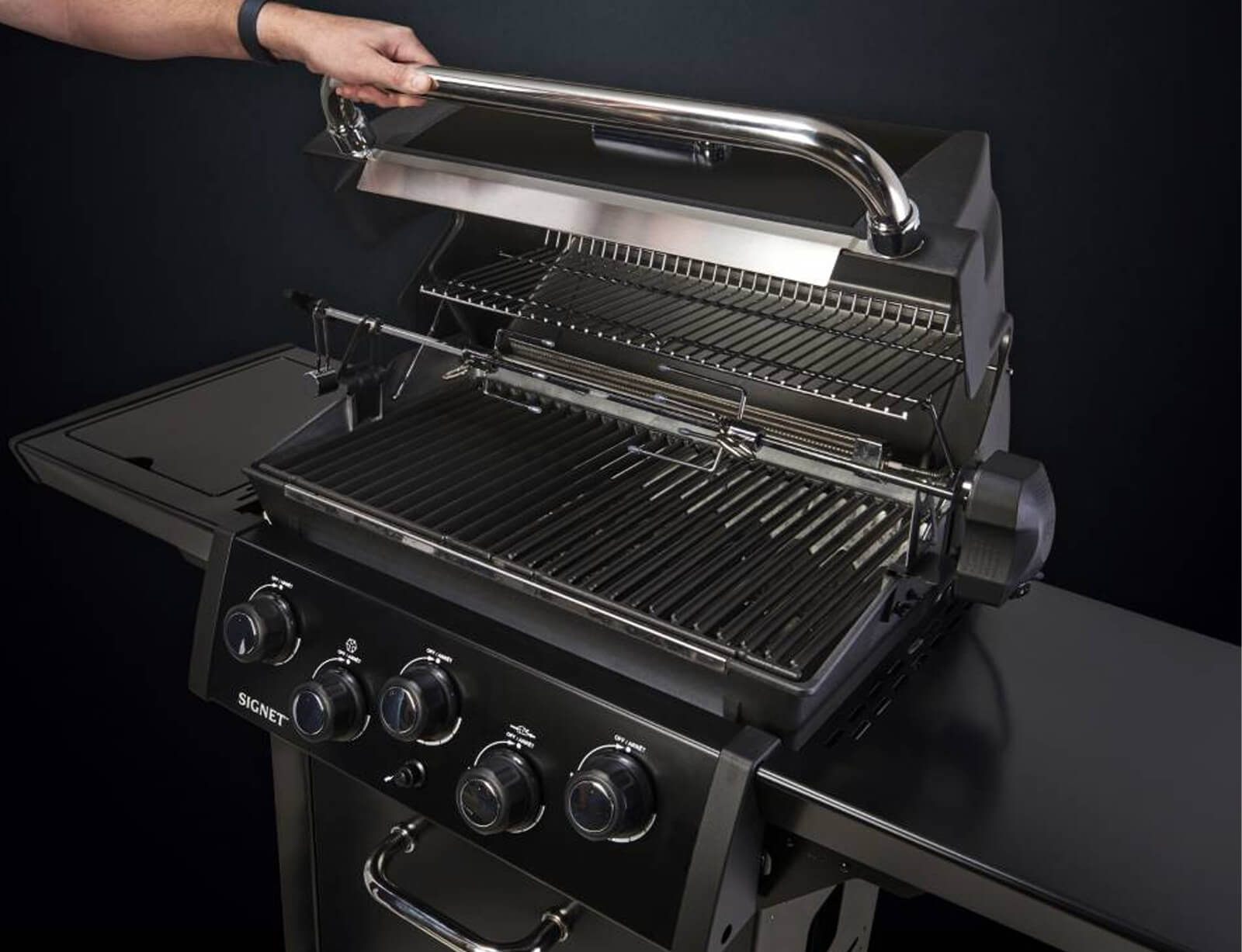 - Οπίσθιος καυστήρας από ανοξείδωτο ατσάλι & σετ σούβλας με ηλεκτρικό μοτέρ.