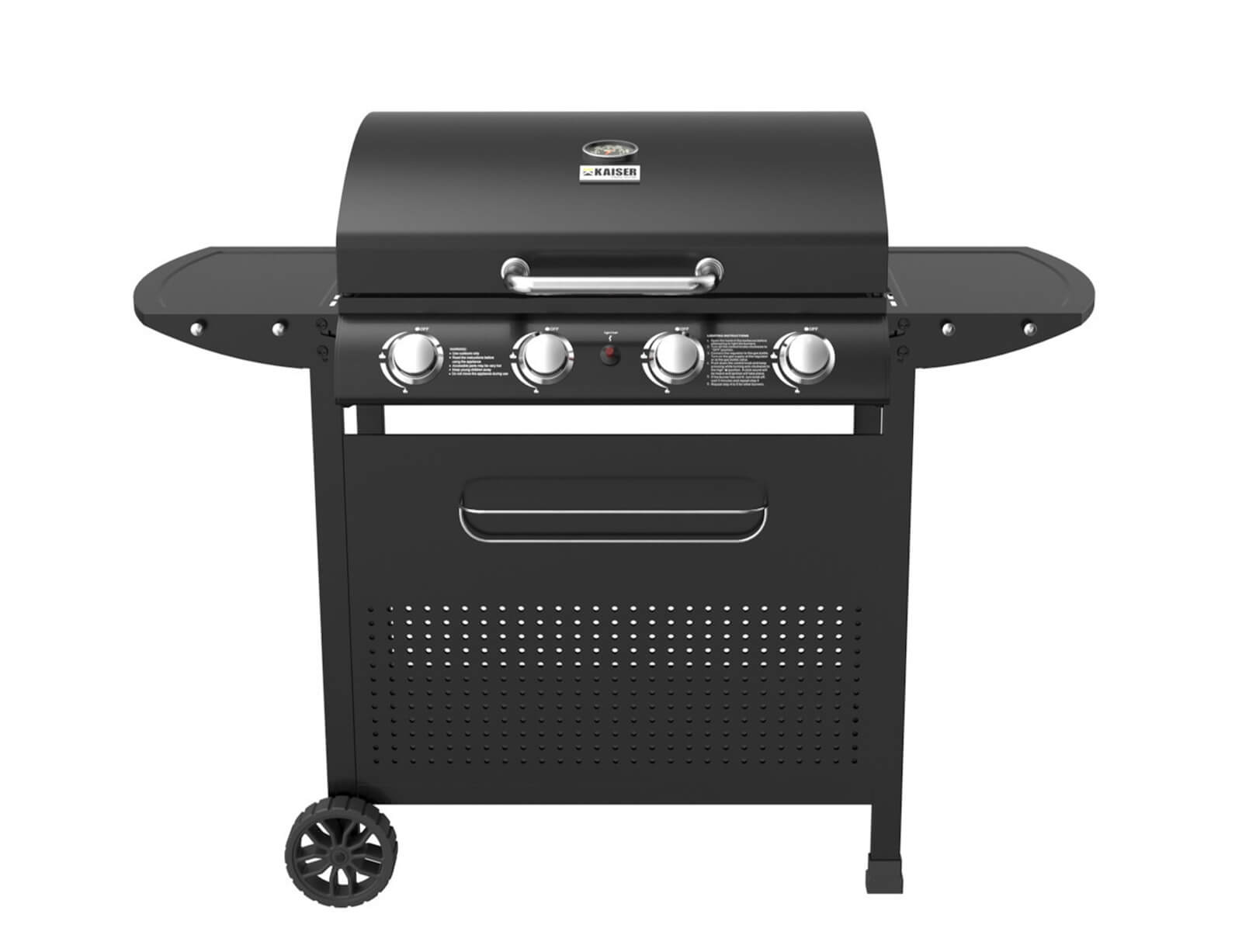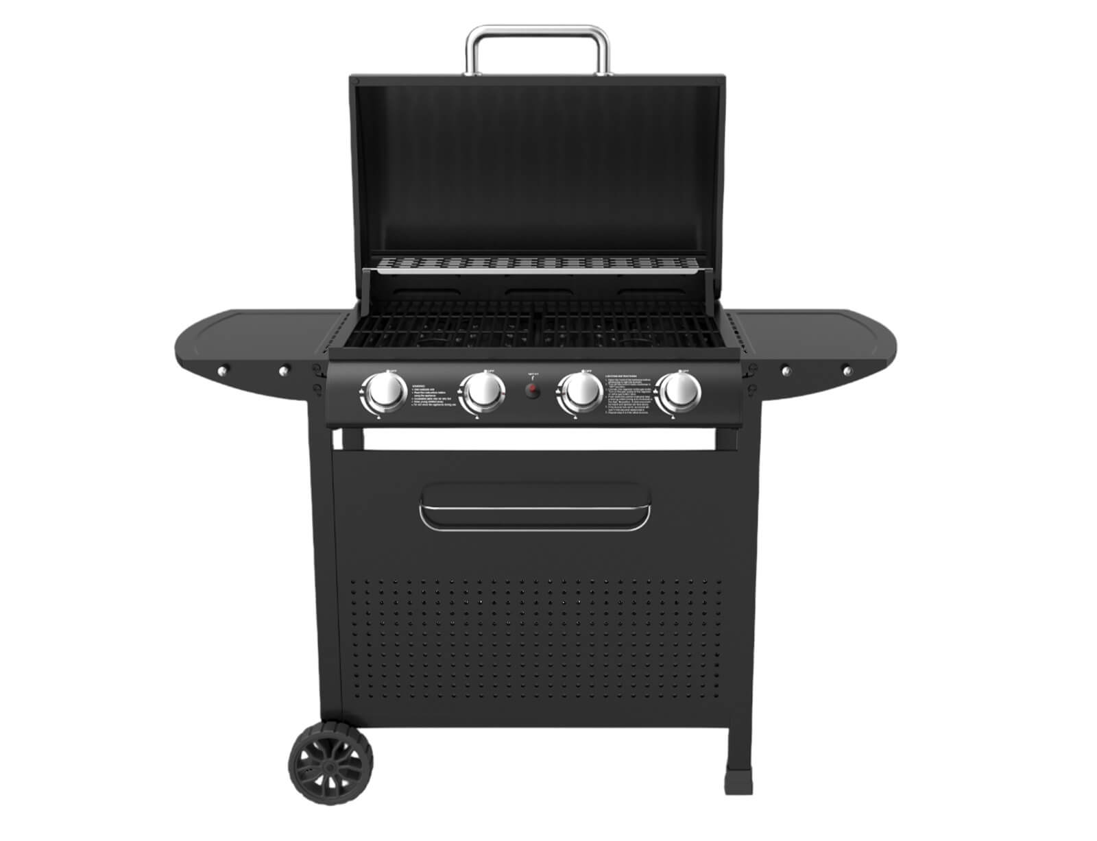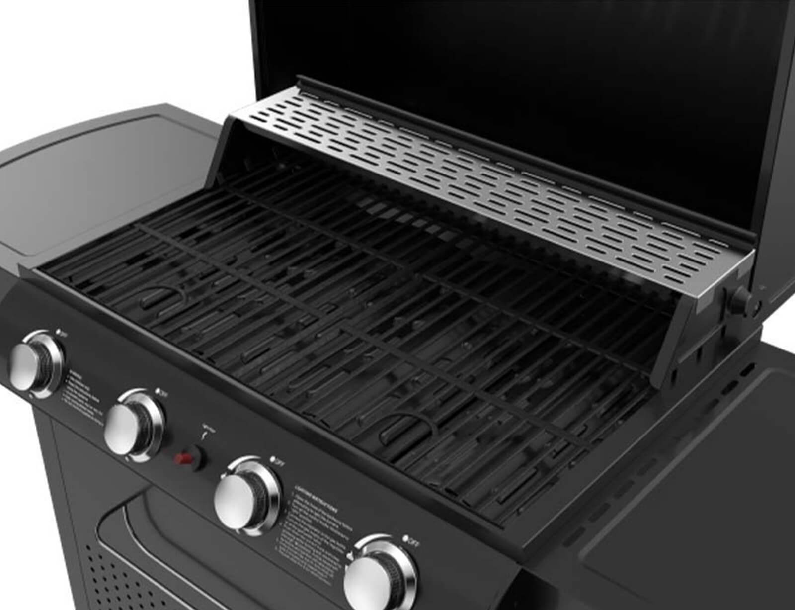 - 2 πτυσσόμενα πλαϊνά ράφια με 2 υποδοχές το κάθε ράφι για ανάρτηση εργαλείων ψησίματος